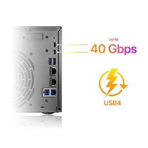 The Lockerstor Gen3 is equipped with two high-speed USB4 ports, offering ultra-fast speeds of up to 40 Gbps. The USB4 ports are compatible with Thunderbolt 3/4 devices, allowing you to transfer, store, archive, and back up faster than ever.
