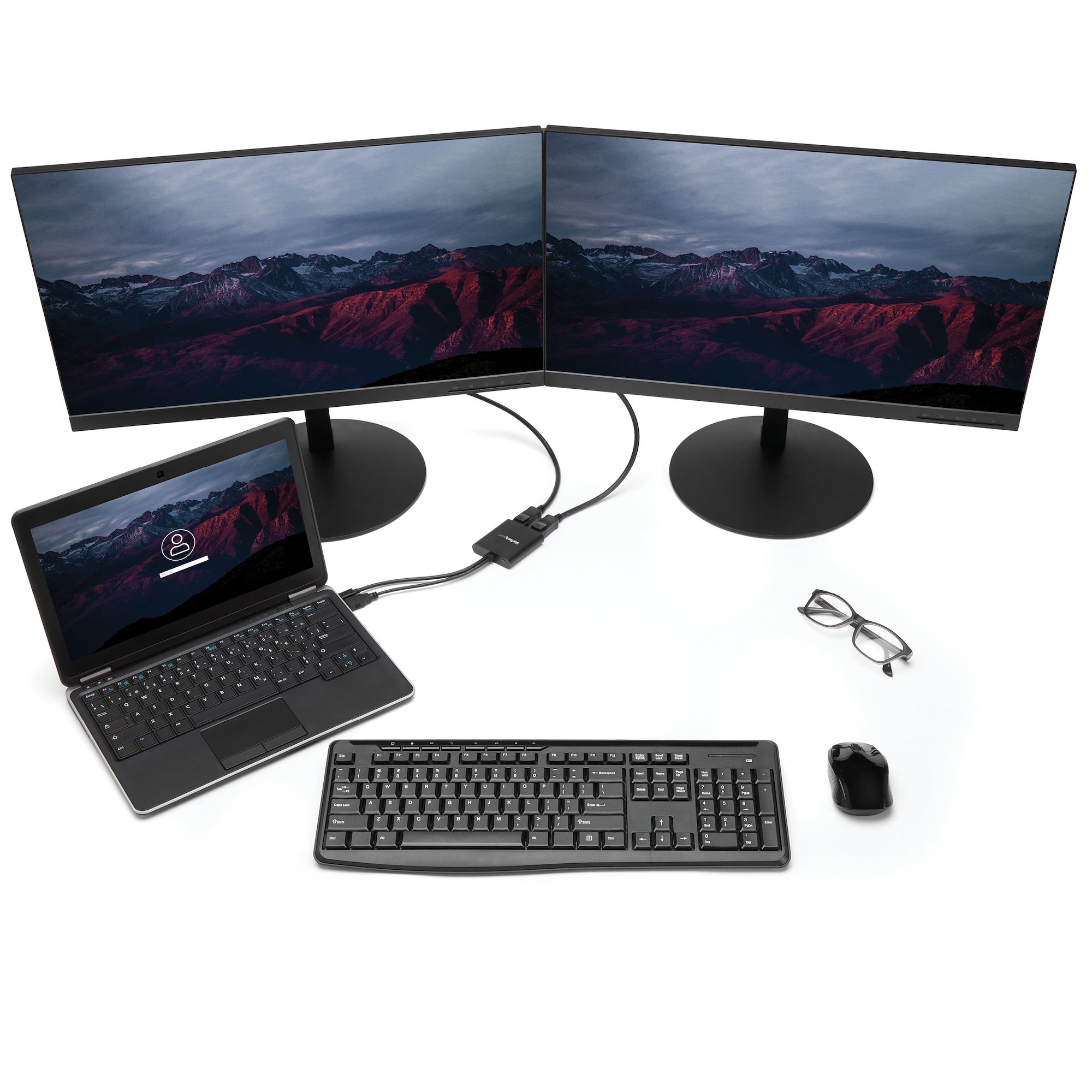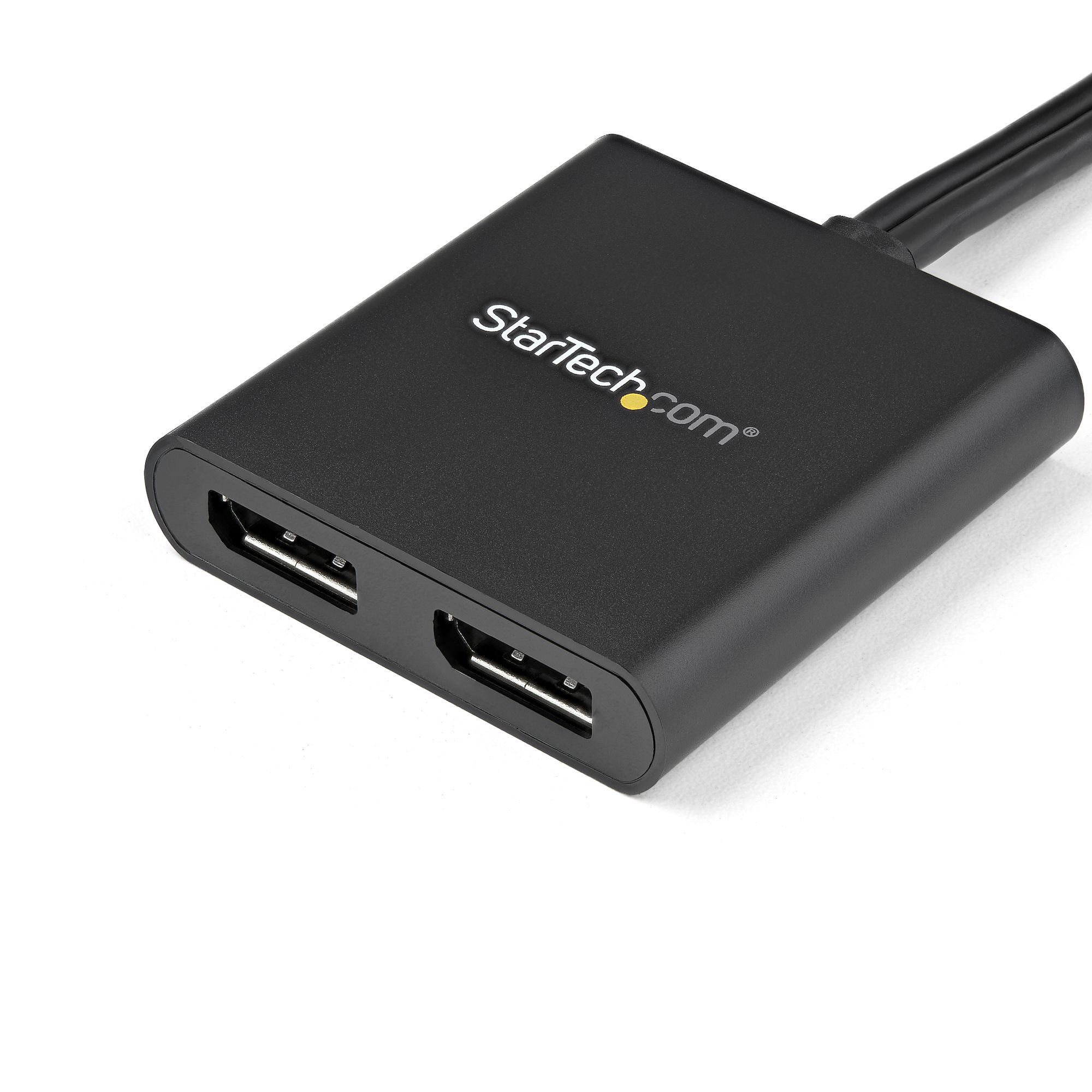 This MST hub lets you connect two DisplayPort monitors to your Mini DisplayPort computer. MST works on any Windows® device that supports DisplayPort 1.2, such as models of the Lenovo™ Think Pad® and Microsoft® Surface™. When connected to earlier revisions of DisplayPort, such as DP 1.1 the MST hub acts as a video splitter. The MST hub is USB powered, so the only thing you'll need to operate the hub is your computer.