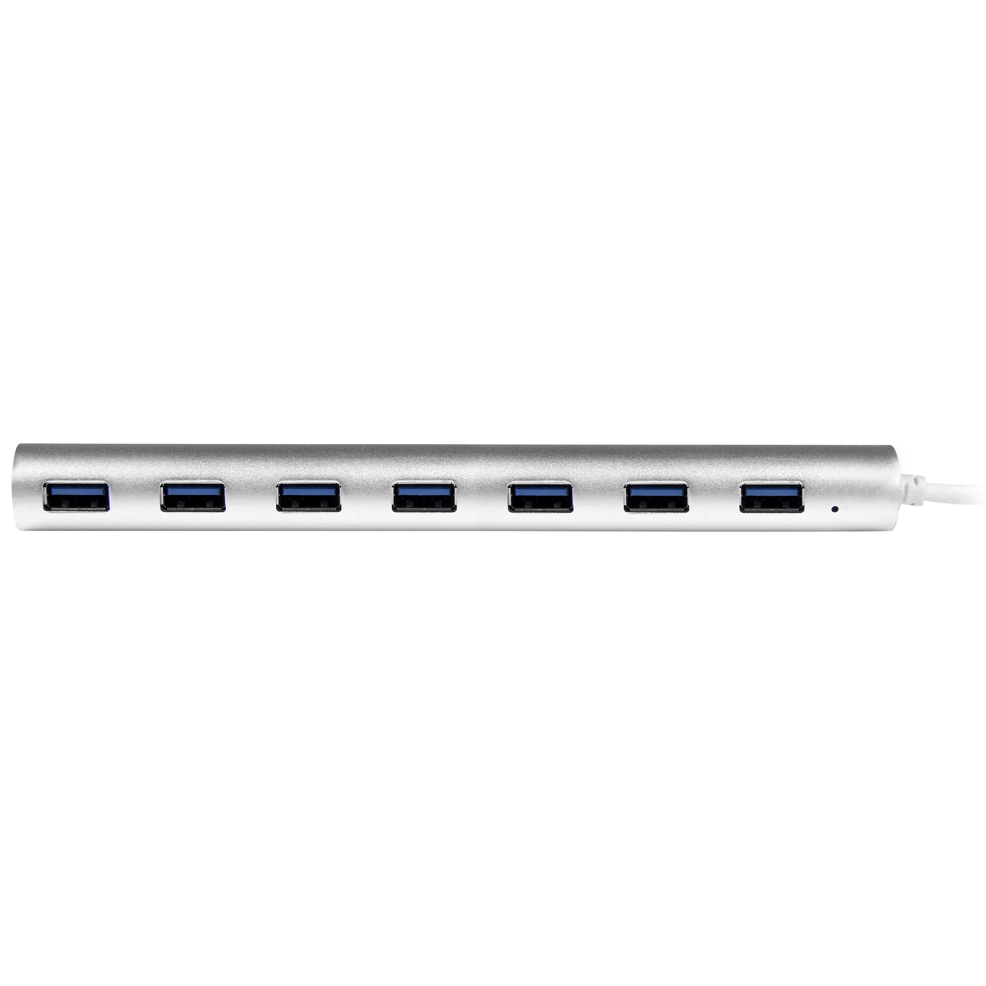 This USB Hub adds seven USB-A 3.2 Gen 1 (5Gbps) ports to a USB-A enabled desktop or laptop computer. The USB Hub connects to a USB-A port on a computer, using the built-in 38.6in (98cm) host cable. The USB hub is backward compatible with USB 2.0 (480Mbps) devices, ensuring support for a wide range of modern and legacy USB peripherals (e.g., thumb drives, external HDDs/SSDs, HD cameras, mice, keyboards, webcams, and audio headsets).The USB hub is compact in size, facilitating portability when travelling.