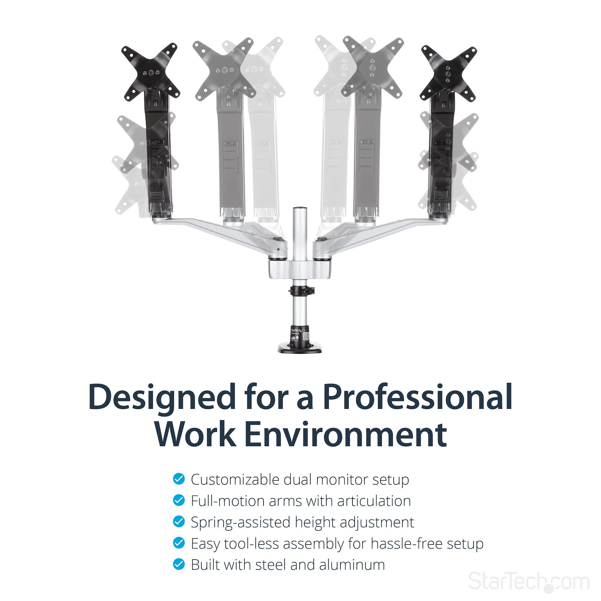 Create a dual-monitor setup to suit your needs, using the interchangeable arms with quick-connect assembly.