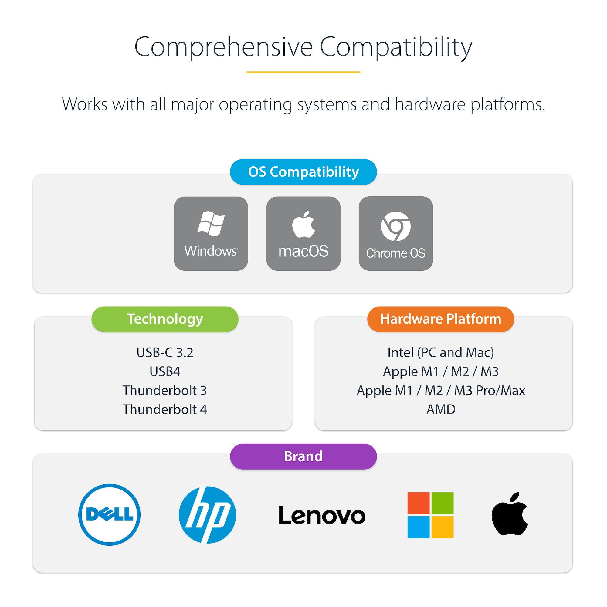 This USB-C Gen 2 10Gbps docking station turns your USB-C ® or Thunderbolt™ 3 MacBook Pro, Windows laptop, and Chromebook into a powerful workstation. A USB 3.2 Gen 2 Type-C dock features everything you need, from quad HDMI or DisplayPort video outputs up to 4K 60 Hz to 10Gbps USB-C & USB-A downstream peripheral ports to 100W Power Delivery.