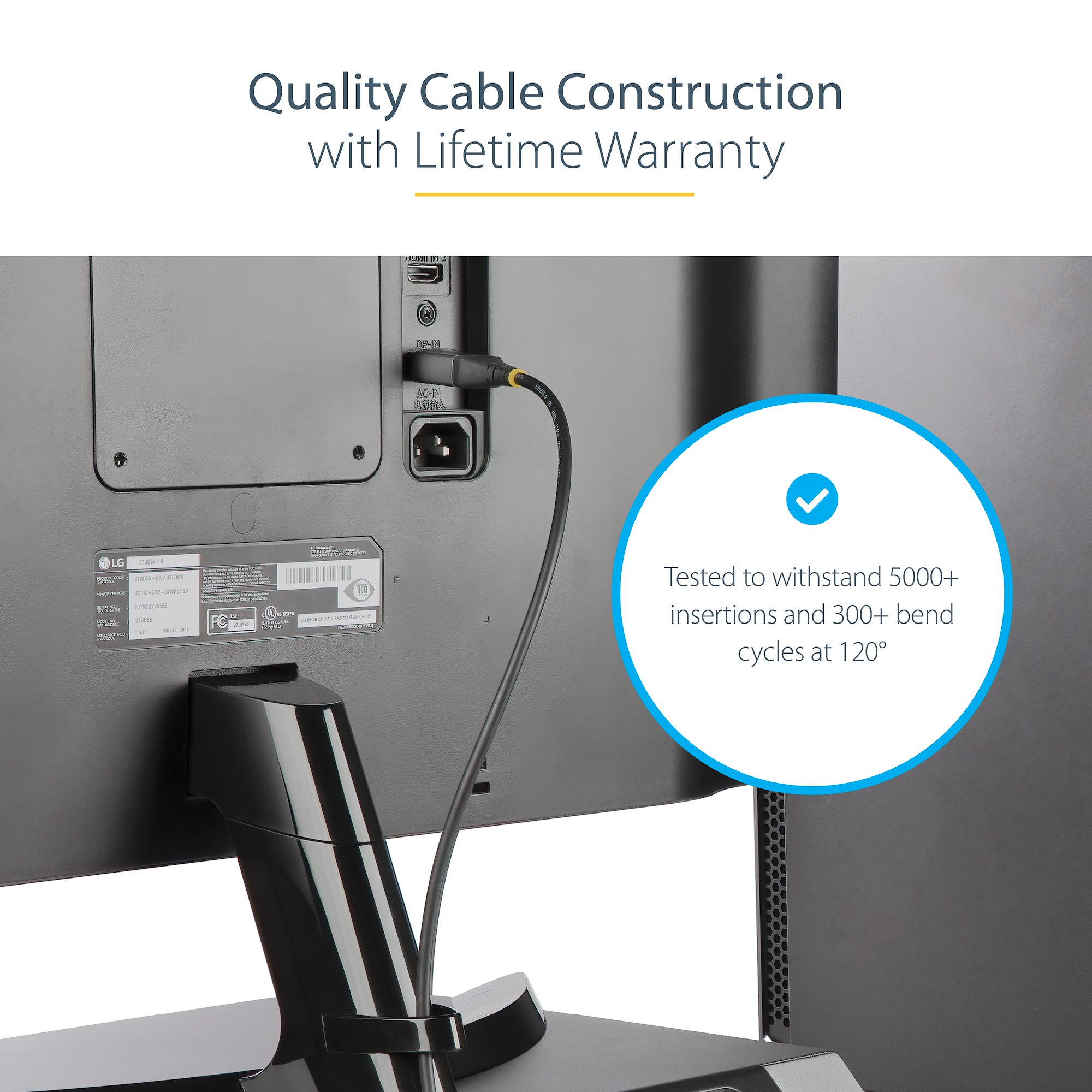 This cable is VESA® Certified to ensure full compliance and efficient operation of the higher link rate of HBR3. It has been tested to meet all DP 1.4 specifications to ensure quality and reliability.