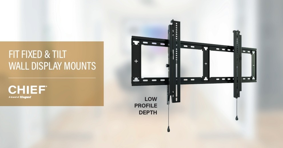 The Fit series RMT3 is a medium tilt display wall mount for 32" to 65" typical display sizes and supports mounting patterns up to 508 x 450 mm. This next-generation design features 0.75" (19 mm) post-installation leveling, robust wall plate design supporting up to 125 lbs (56.7 kg), 2" (51 mm) low-profile depth, up to 12° tilt, and UL and TUV safety standard approvals.