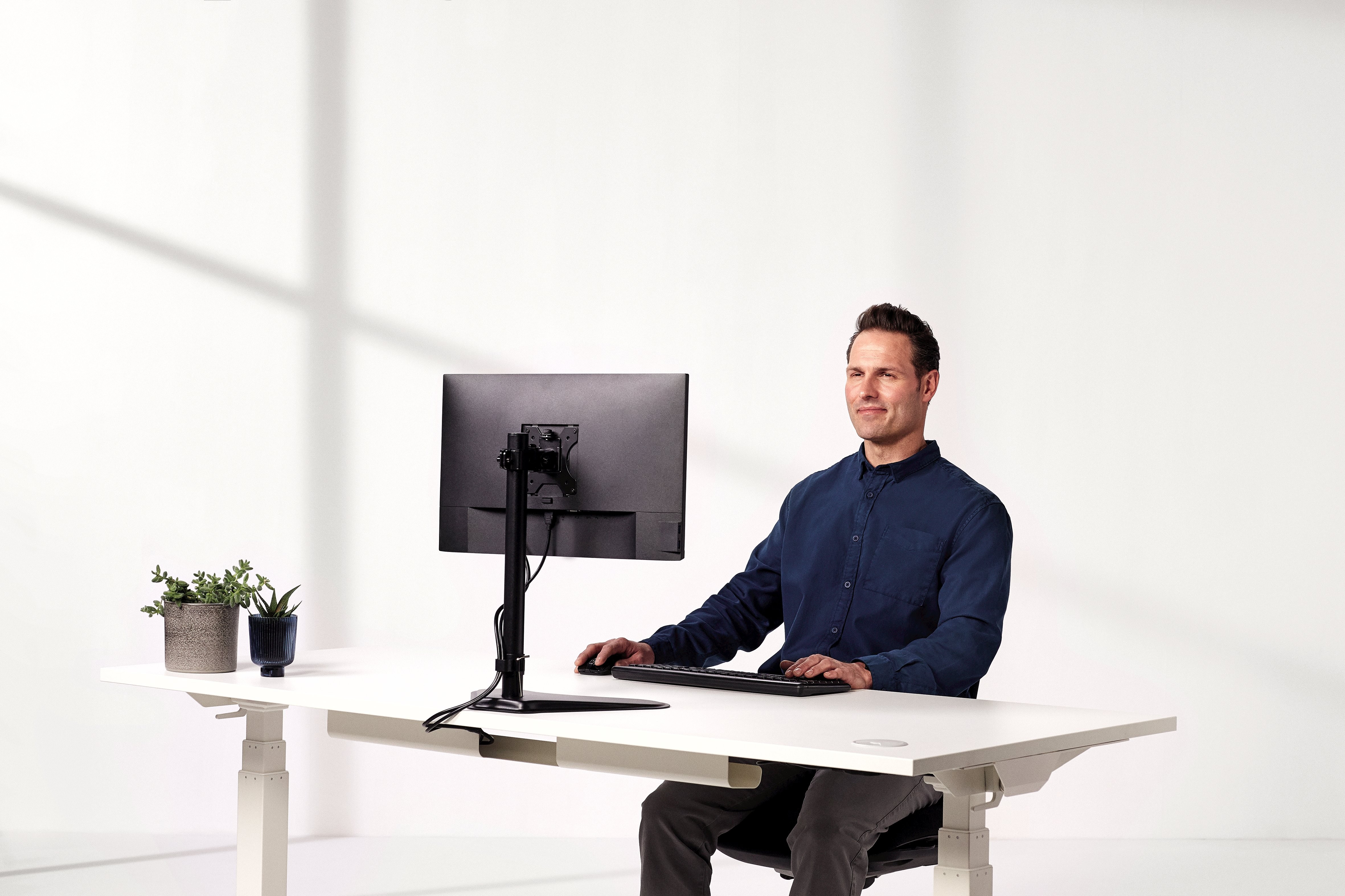 Freestanding design allows for increased flexibility and can be used in spaces that do not allow a clamp or grommet mount