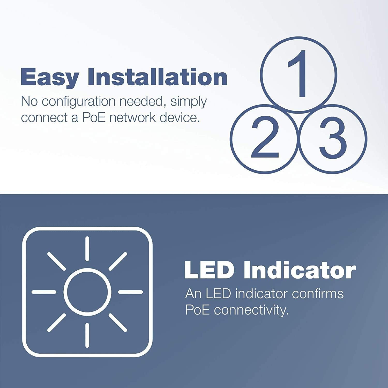 LED indicator confirms PoE connectivity