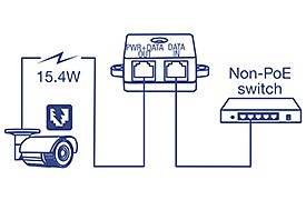 Supplies a PoE device with PoE (15.4W) power.