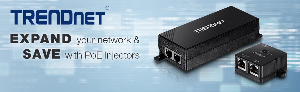 TRENDnet's Gigabit PoE Injector, model TPE-113GI, combines electrical power with a Gigabit network connection. Auto-sensing technology conveniently delivers the correct wattage needed to power your PoE devices. Connect the injector to a non-PoE Gigabit switch and then run an Ethernet cable with data + power to network a PoE device up to 100 meters (328 ft.) away.