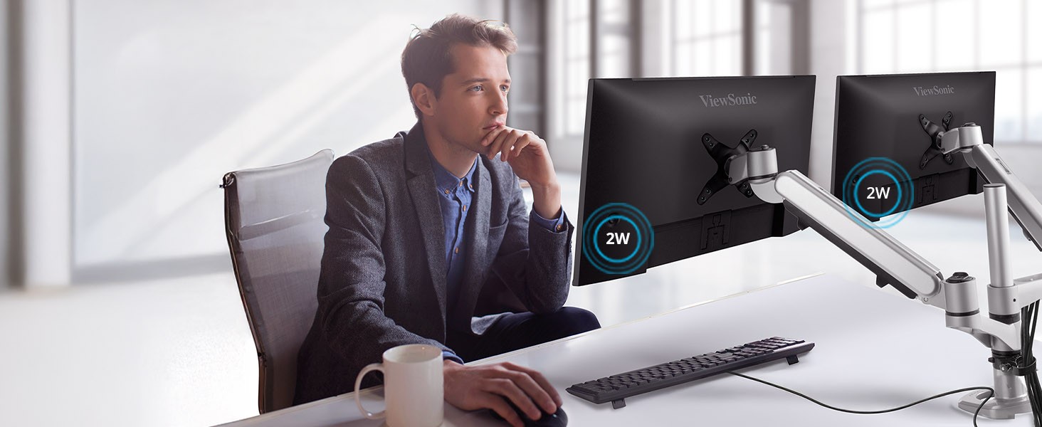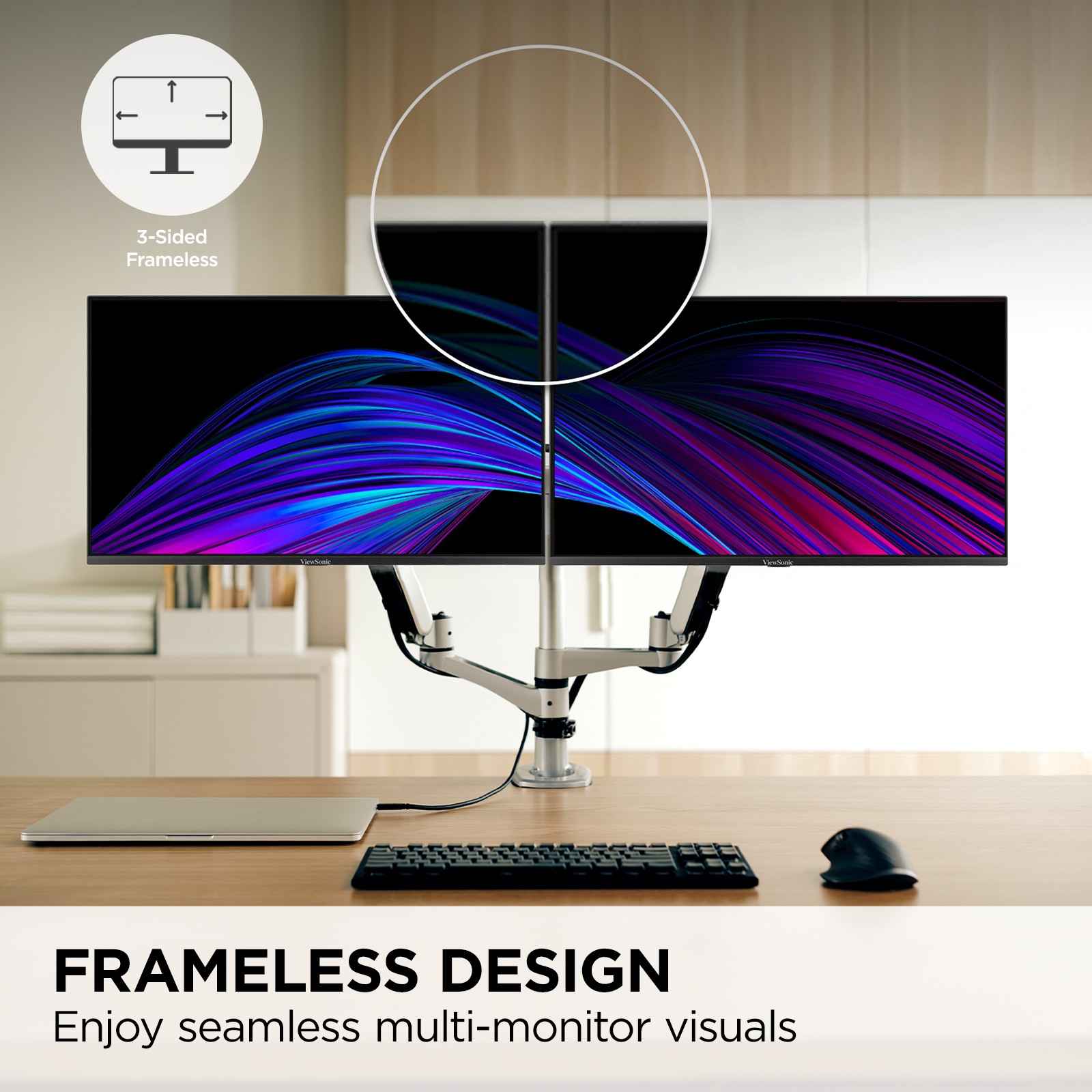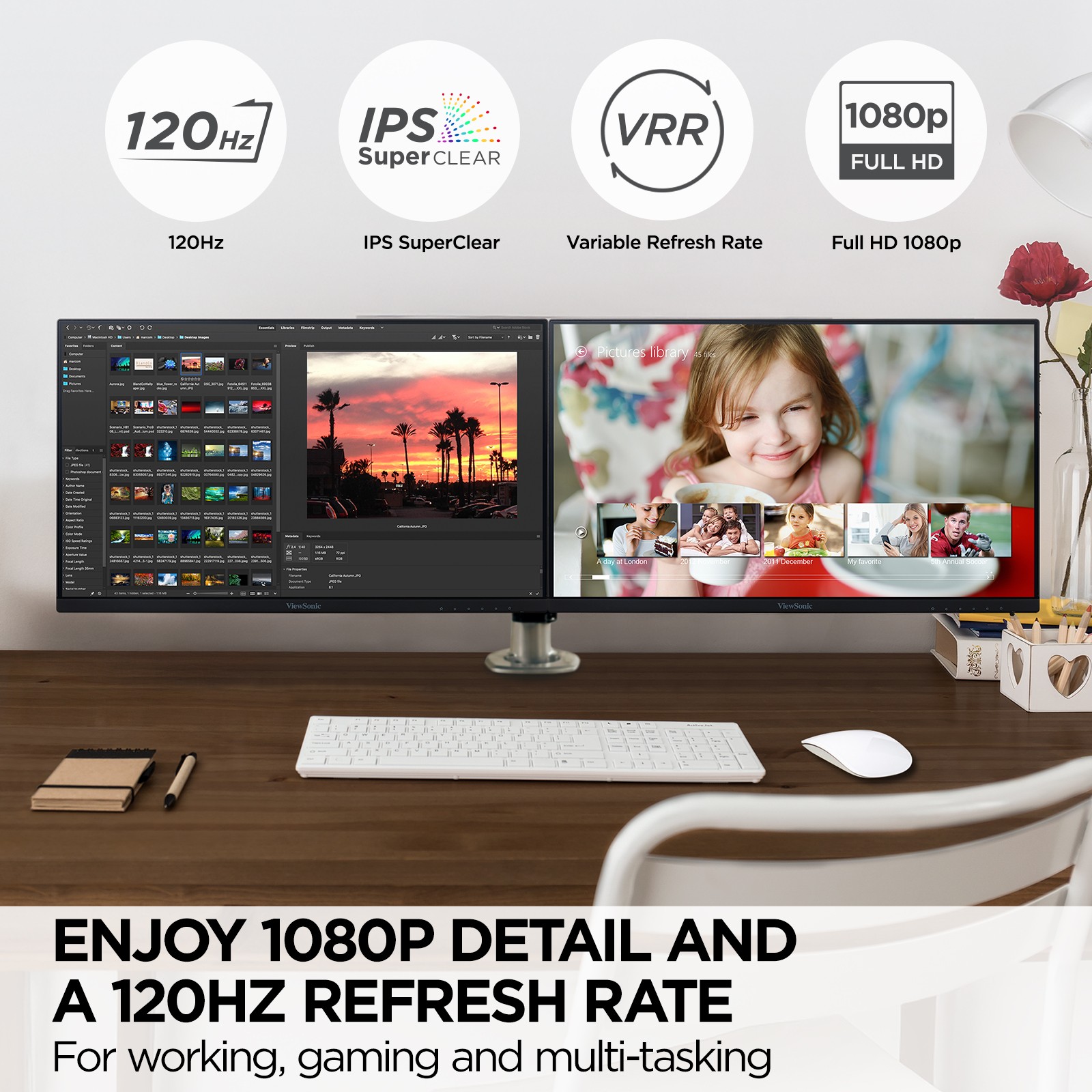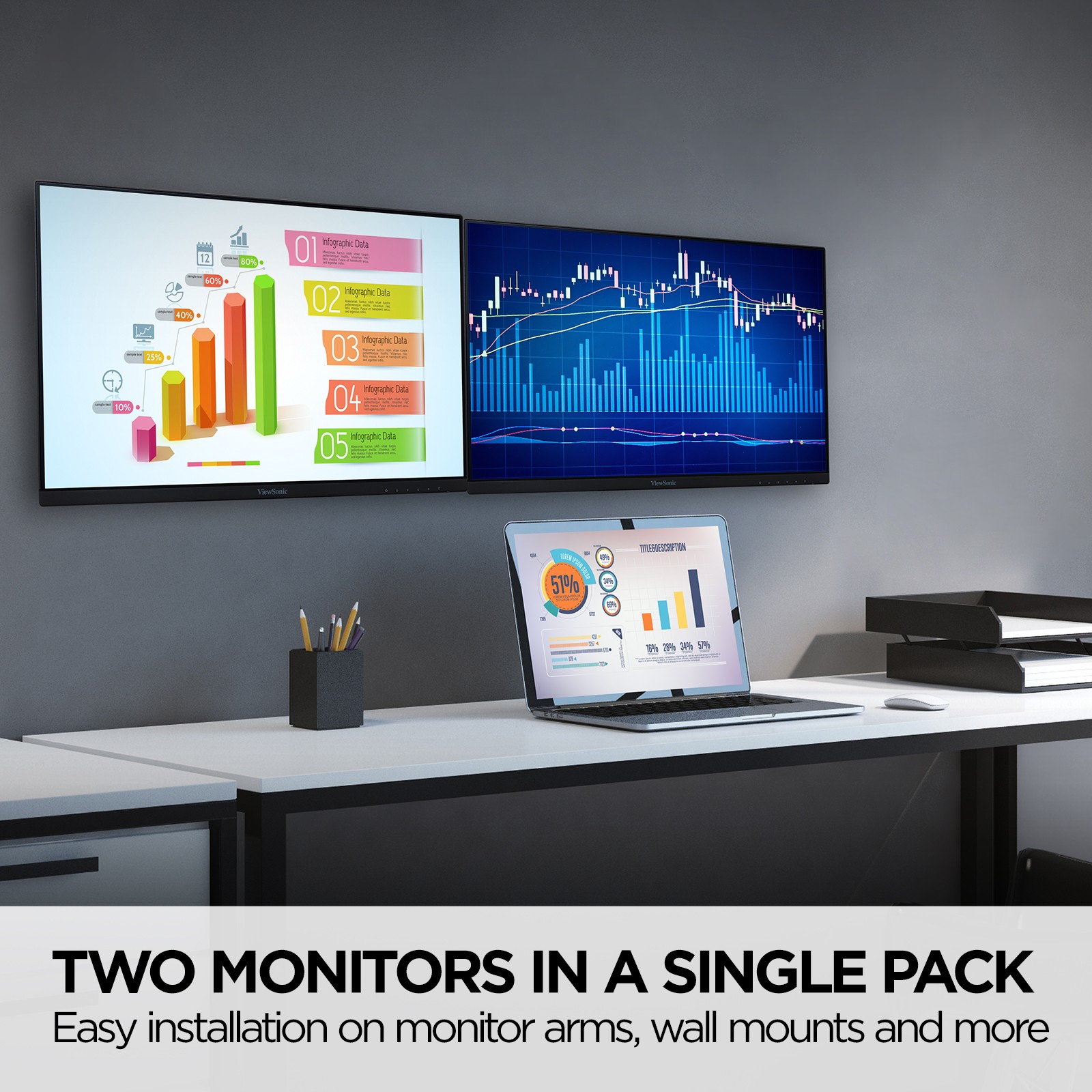 Skyrocket productivity and optimize your workflow with the ViewSonic® VA2456-MHD_H2 dual monitor pack. Featuring hassle-free installation and long-term reliability, this dual 24" monitor solution substantially lowers your total cost of ownership. And with biodegradable packaging and VESA-compatible mounting, you can easily cut down on waste and do your part to contribute to a greener planet. Featuring a 3-sided ultra-thin bezel, the VA2456-MHD_H2 provides a seamless multi-monitor viewing experience that dramatically increases visual clarity and helps to reduce eye strain. And with SuperClear® IPS panel technology, you can enjoy wide-angle viewing and vibrant, true-to-life colors. Connect your favorite devices with ease using the HDMI, DisplayPort, and VGA inputs. Upgrade your setup and enhance productivity with the ViewSonic VA2456-MHD_H2 dual monitor pack today.