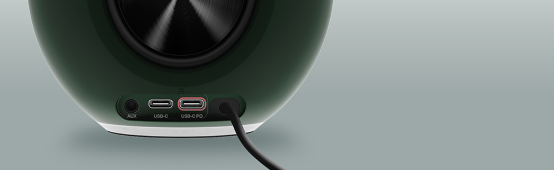 ^PD adapter not included. The USB-PD port only provides power to the speakers and does not support USB audio, you will still be required to connect to an audio source separately for audio (USB-C, Bluetooth , or AUX-in).
