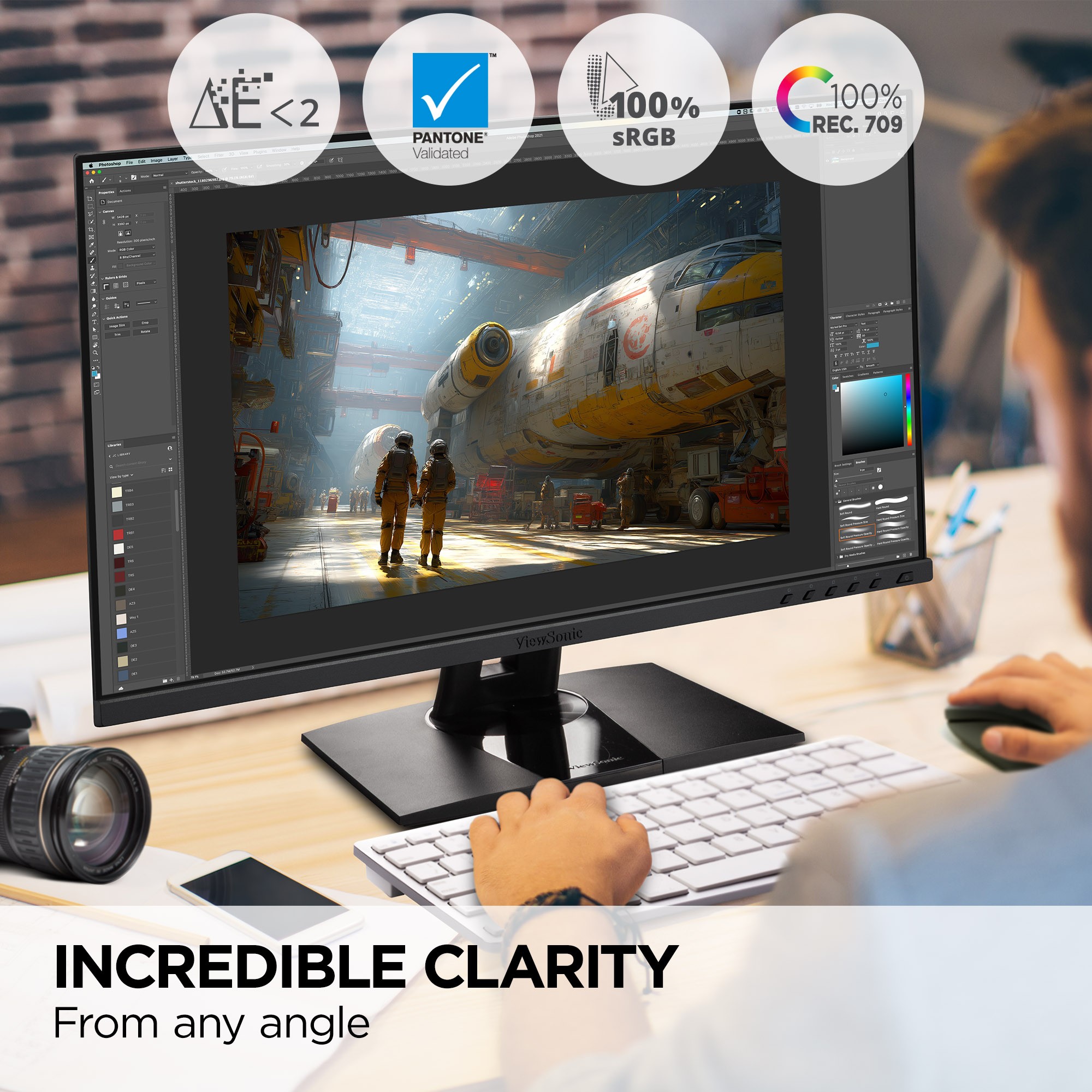 Engineered to deliver unmatched color accuracy crucial for professional applications, the ViewSonic® VP2456A 24" (23.8" viewable) Full HD monitor displays your work with the vivid and lifelike color it deserves. With a SuperClear® IPS panel and a sleek 3-sided frameless design, the VP2456A provides a near-seamless viewing experience ideal for multi-monitor setups. The VP2456A is equipped with USB-C for single cable connectivity to deliver video, audio, and 90W of power delivery. To ensure precise, uniform color, each of our monitors is factory calibrated to deliver an amazing Delta E <2, so you can be confident what you see on screen is what your clients and customers will see as well.