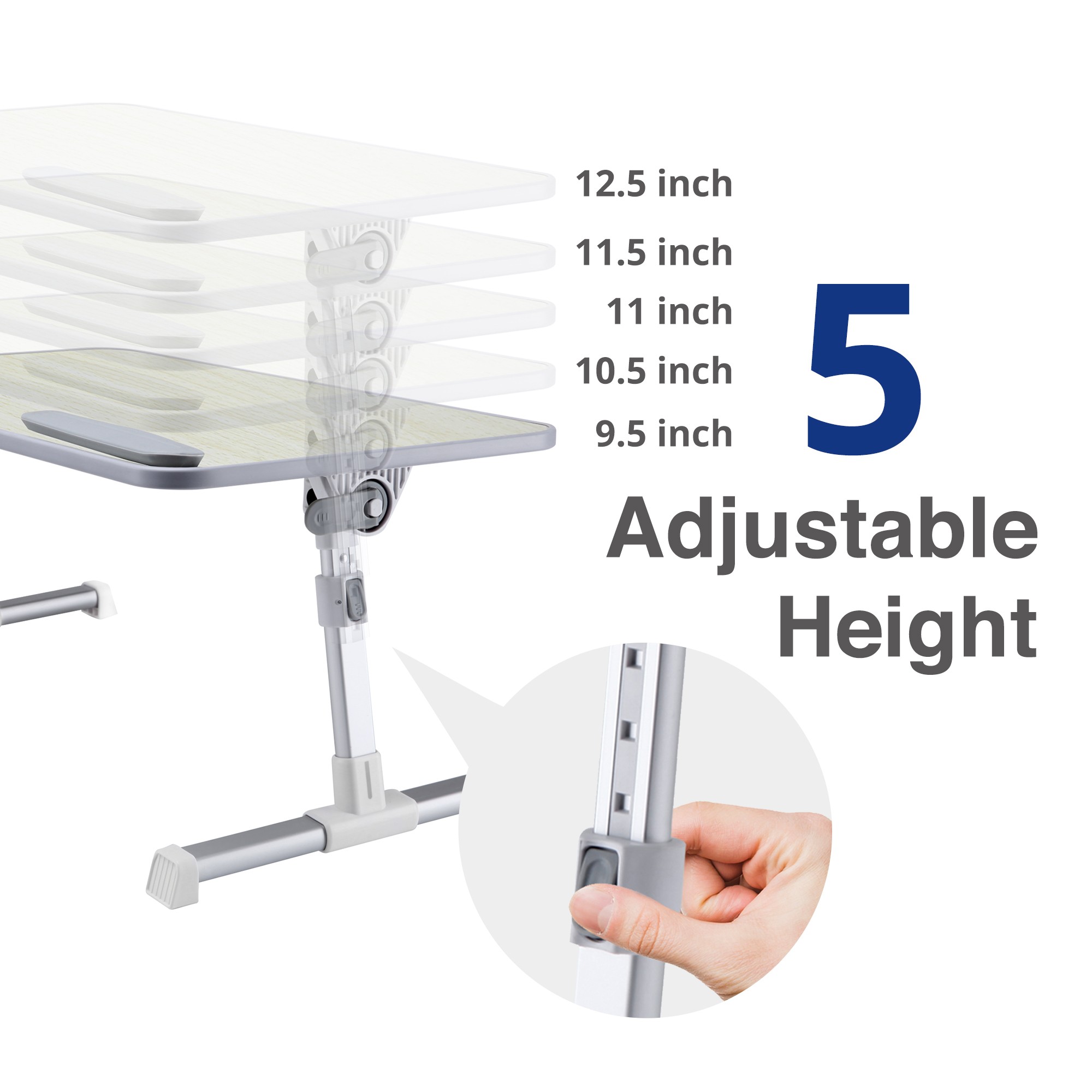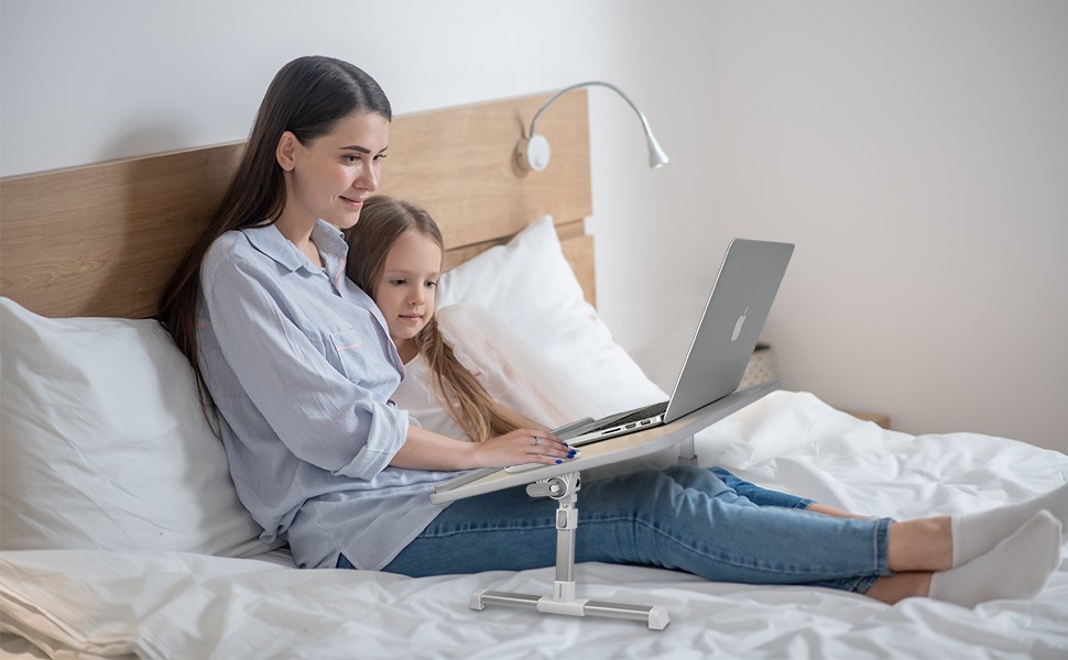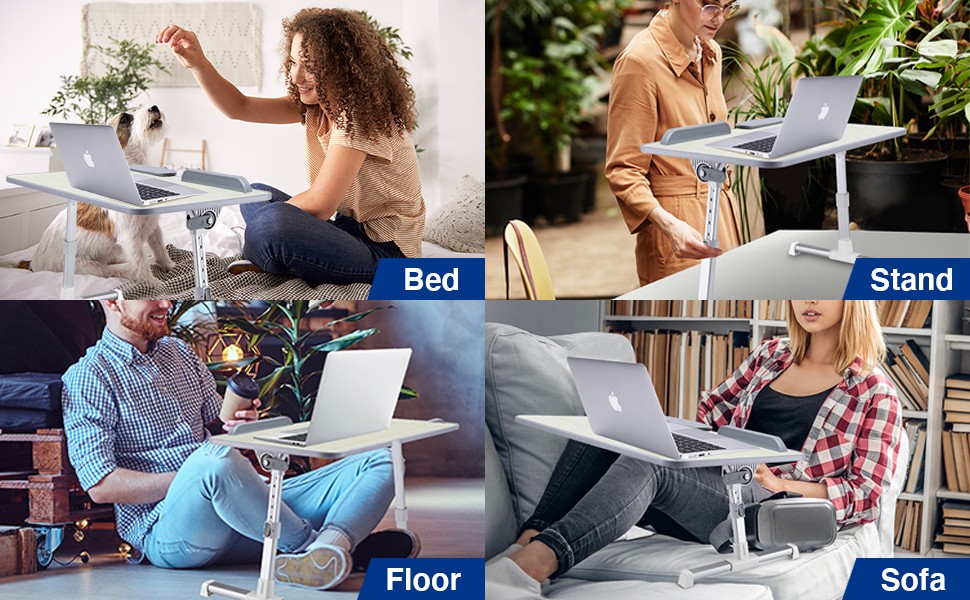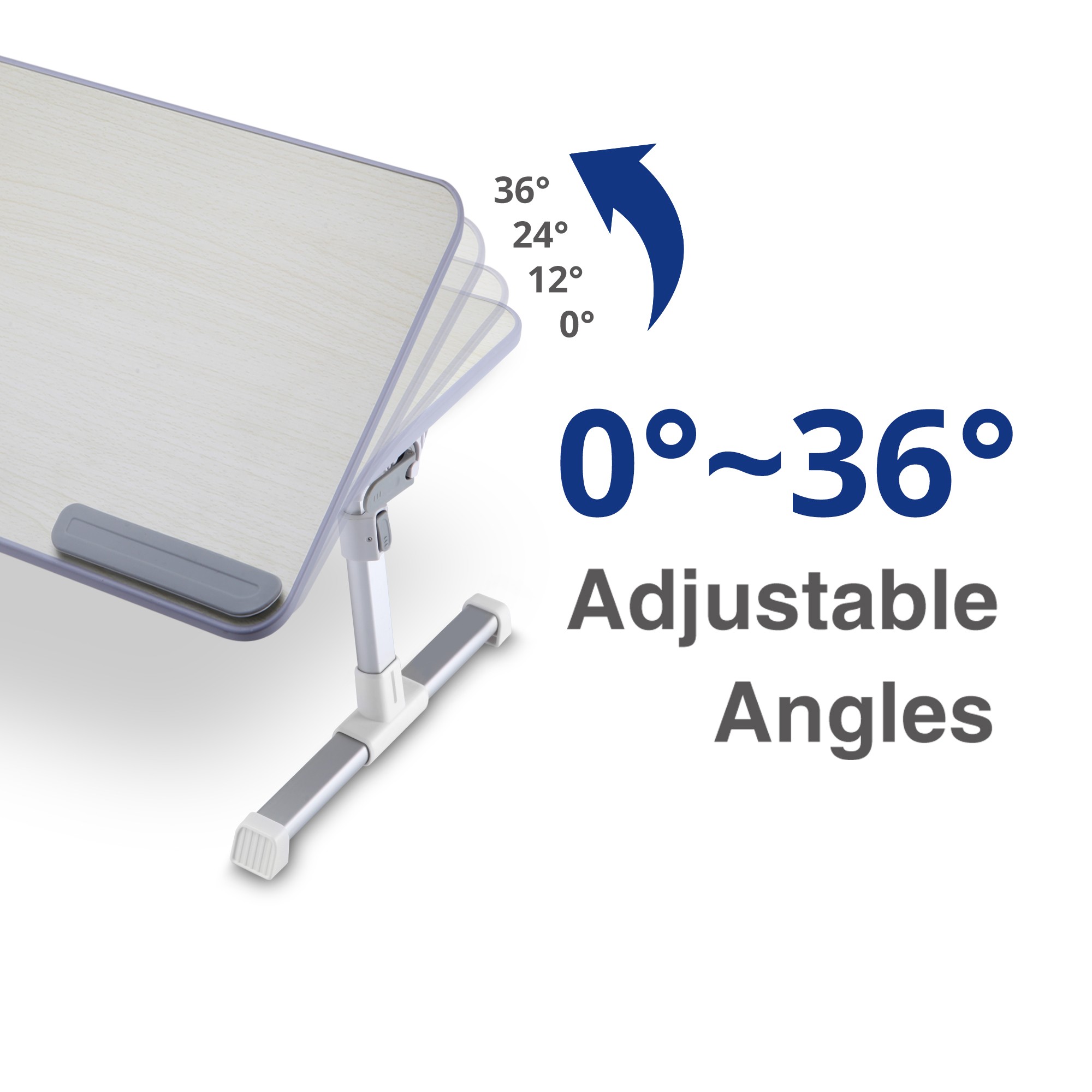 Adjustable Laptop Bed Desk for MacBook and PC, provides superior ergonomics and comfort easily adjust the height and angle while using a laptop, reading, snacking and gaming
