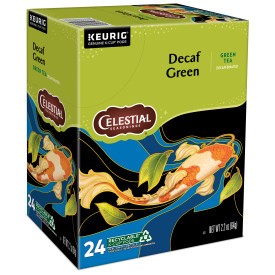 Celestial Seasonings Decaffeinated Green Tea K-Cup pods embrace the benefits of green tea without committing to the caffeine. This full-bodied brew has everything you seek from a fine-quality green tea, but you can enjoy its smooth flavor anytime—this one won't keep you up at night. Celestial Seasonings takes out the caffeine and leave in the natural goodness using a compound that occurs naturally in the tea leaves. So wrap up your day with a mellow cup of Decaffeinated Green Tea and the convenience of Keurig... serene!