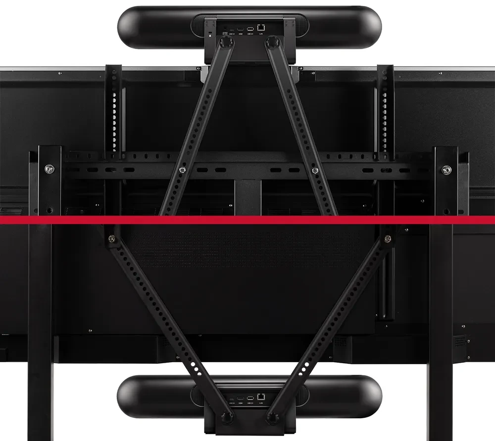 This mount allows for flexible installation of video conferencing cameras either on top of or at the bottom of the display.