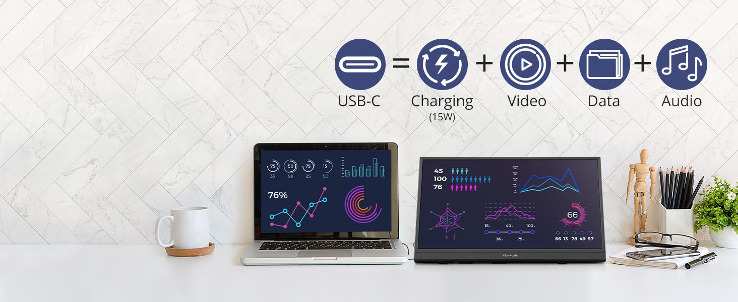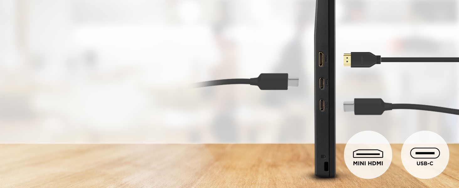 Designed for business travelers, remote professionals, and digital nomads, this ultra-slim, lightweight monitor helps double your screen space and add greater efficiency to your workflow. The VA1653’s Full HD 1080p anti-glare display delivers crisp, vibrant visuals for comfortable viewing, even in bright environments. With USB-C connectivity, users can significantly streamline their setup and cut out the cable clutter as they enjoy video, data, audio and power over a single cable. For added flexibility, a mini HDMI port allows connection with a wider range of devices including laptops, tablets and more. Plus, with an ultra-portable design that measures less than an inch thick and weighs under two pounds, the VA1653 slips effortlessly into bags, briefcases and backpacks. Whether you're in a coffee shop, airport lounge, or co-working space, get set up with a fully functional workstation in seconds. Stay productive, stay mobile, and work smarter with the VA1653.