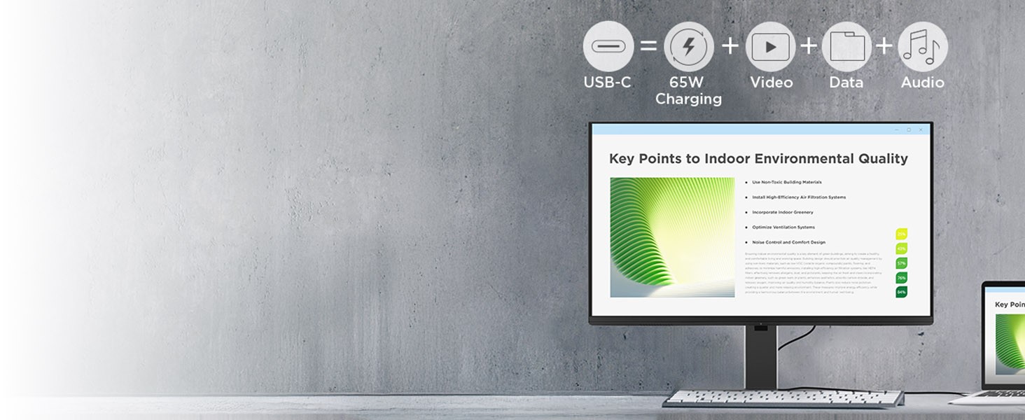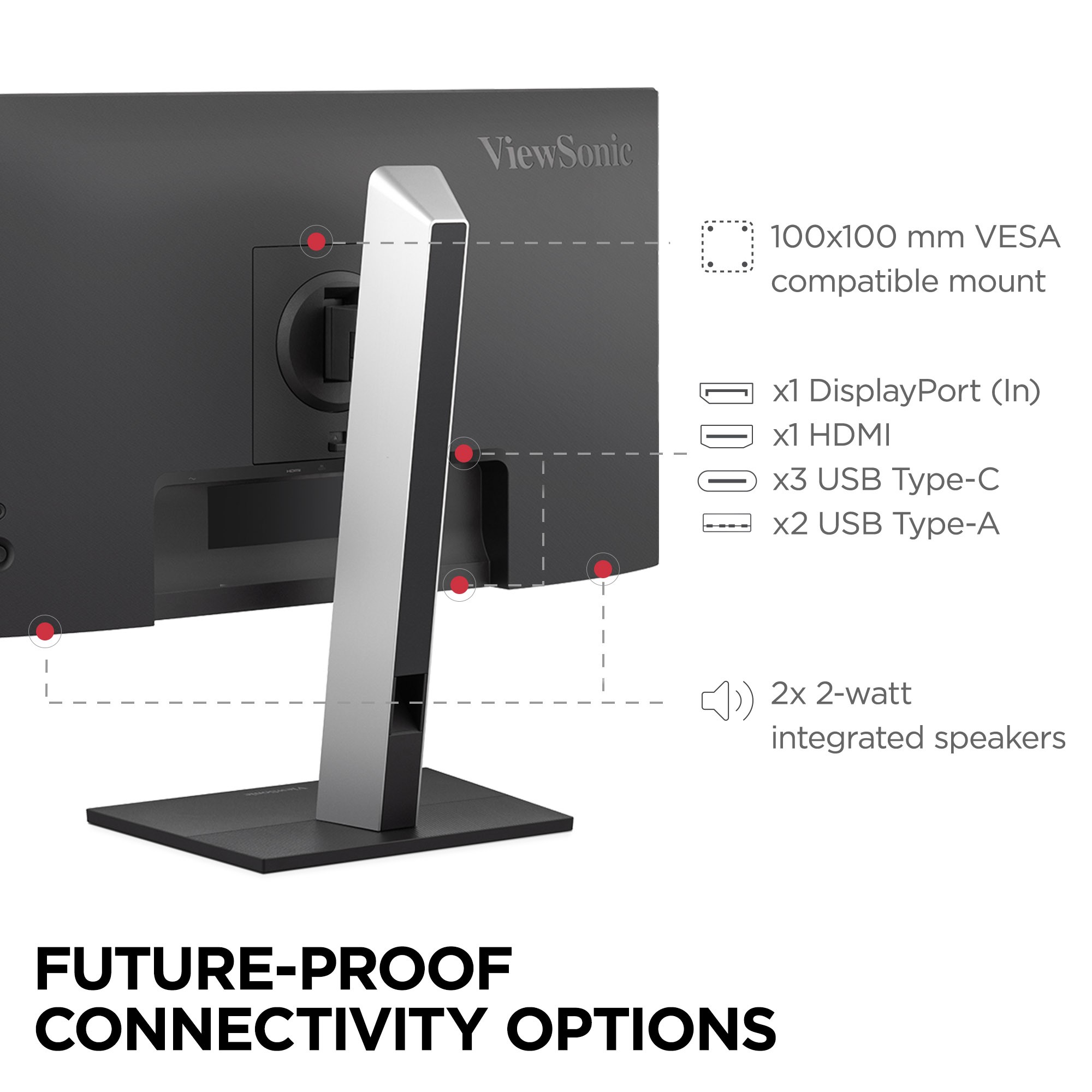Upgrade your setup with the ViewSonic® 24” VG2452, a powerful workspace solution that helps enhance productivity, reduce clutter, and maximize comfort. With USB-C connectivity, users can streamline their workspace and eliminate cable clutter while enjoying 65W of charging, data, audio, video, and power over a single cable. An HDMI port, DisplayPort, and an integrated USB hub (x2 USB-C, x2 USB-A) make it easy to connect all your favorite devices, peripherals and other accessories. Built for all-day comfort, this monitor features a fully ergonomic stand with height, pivot, swivel, and tilt adjustments, ensuring an optimized viewing experience tailored to your needs. Enjoy smoother visuals with a 100Hz refresh rate, while a blue light filter and flicker-free technology help reduce eye strain. Sustainability meets innovation with a sleek, laser-textured design crafted from eco-friendly materials. The VG2452 comes in FSC-certified, 100% recyclable packaging, that helps reduce waste and eliminates the need for single-use materials.