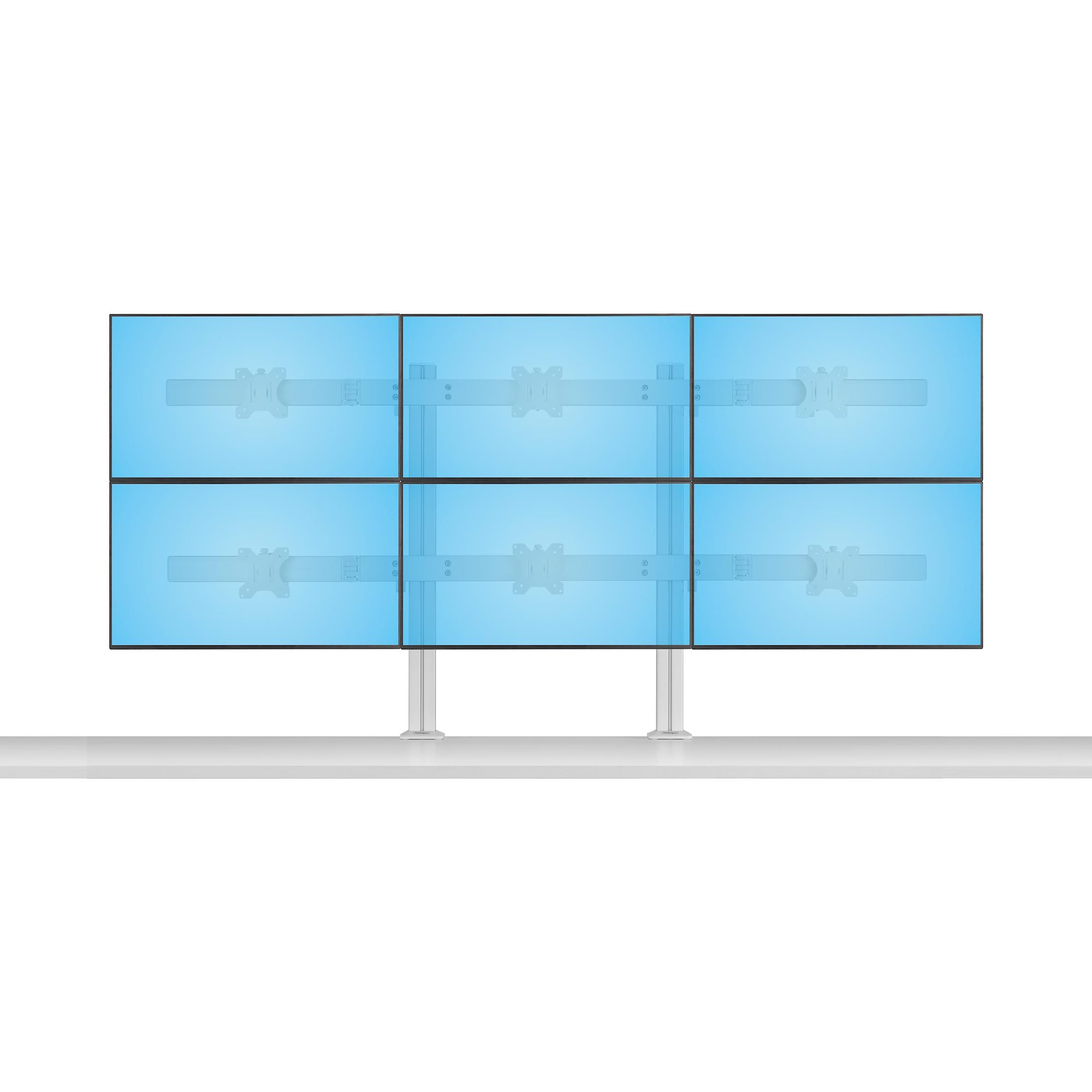 This monitor desk mount is designed to support up to six 32-inch displays, creating an ergonomic multi-monitor setup that provides a vast viewing area for productivity.