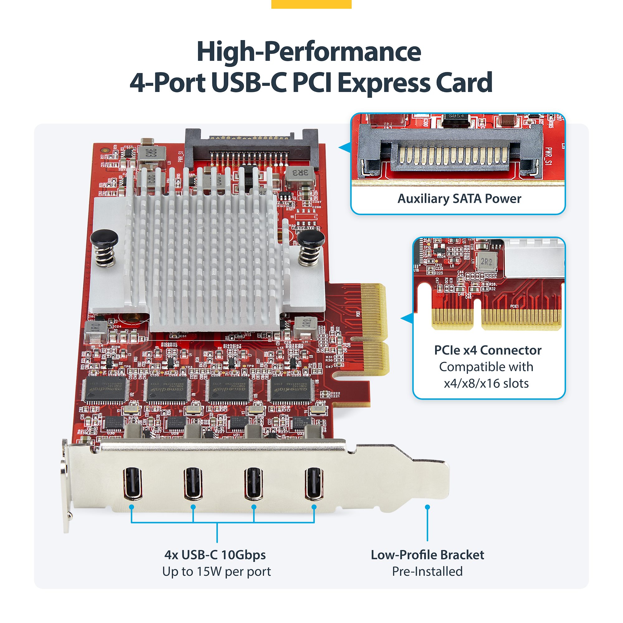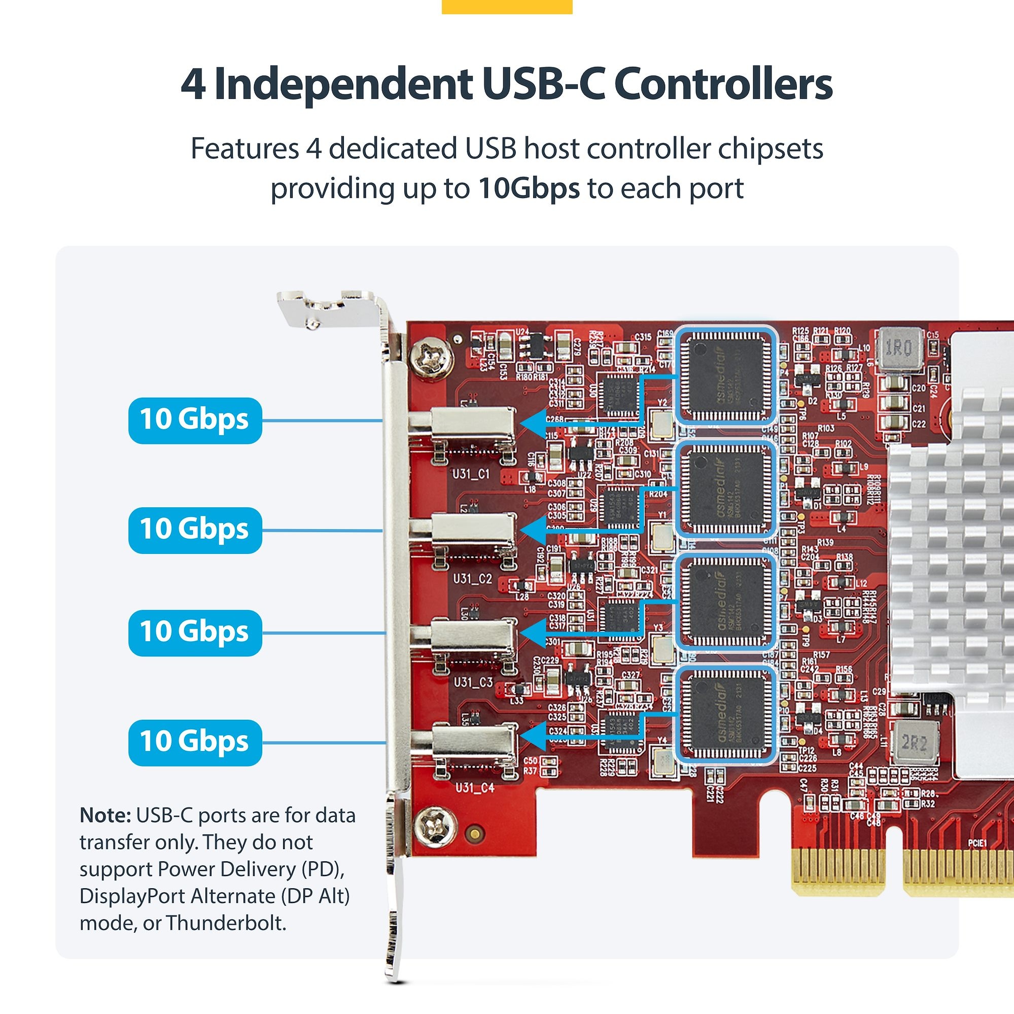 Traditional single-controller USB cards share bandwidth across all ports. With its four independent USB controllers, this USB-C expansion card enables each port to achieve up to 10Gbps, reducing bottlenecks and increasing data throughput.