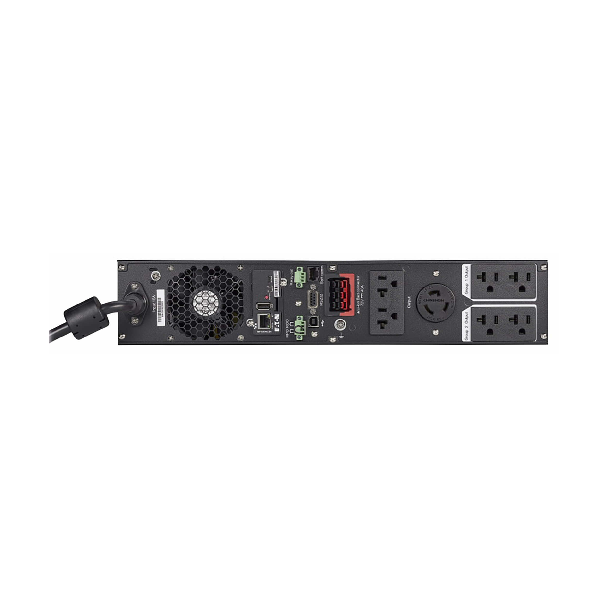 One L5-20R and six 5-20R managed outlets provide connected equipment with pure sine wave AC output and allow you to monitor power consumption down to the outlet group level. Power provided by these outlets is filtered to protect connected equipment against damaging surges and line noise. Four 5-20R outlets are grouped into two load banks that let you shed non-critical loads to extend runtime for critical loads.