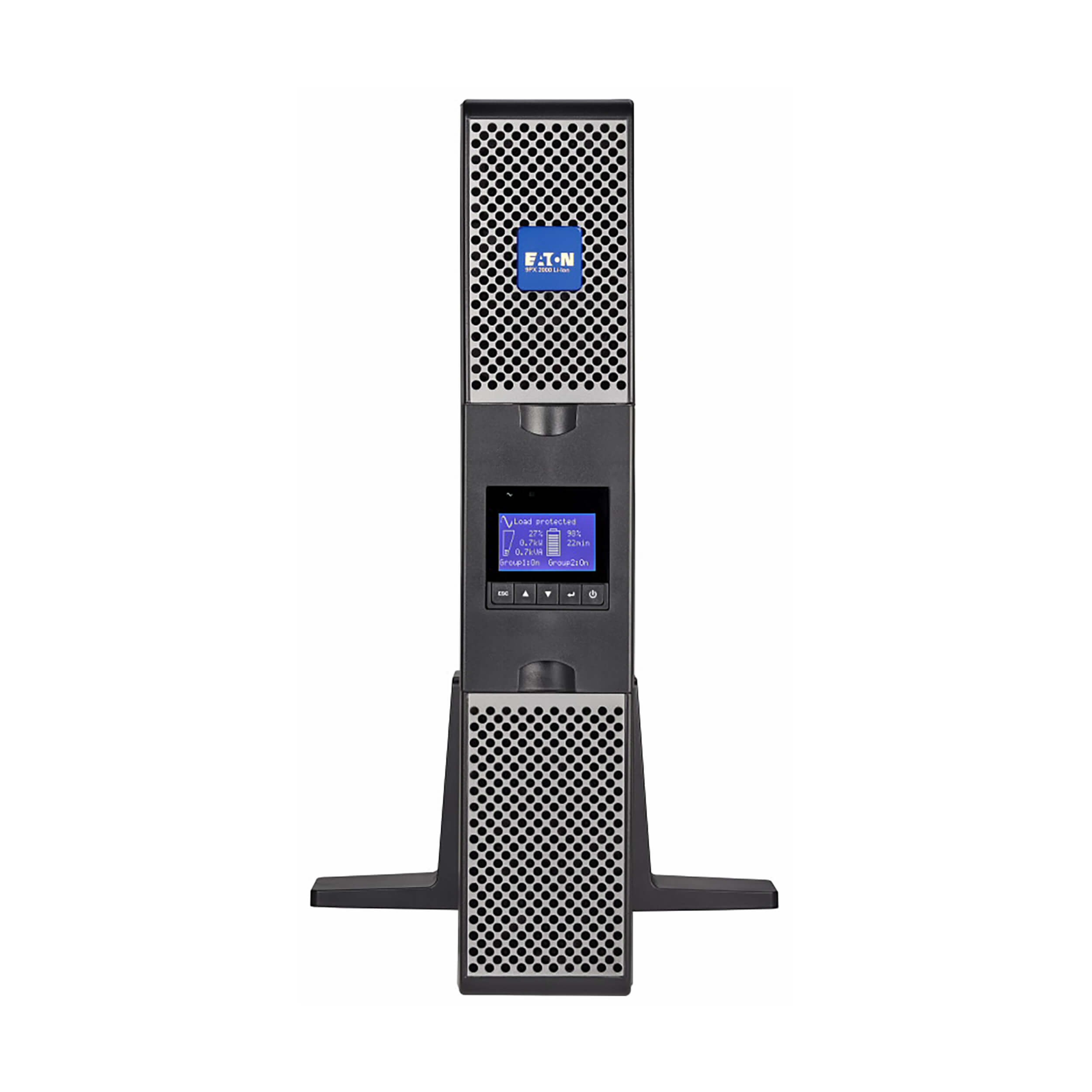 You can mount the 9PX2000RTN-L in just 2U of space in an EIA-standard 19-inch rack using the included 4-post rail kit or an optional 2-post rail kit (RK2PC, sold separately). You can also adapt it for tower installation using the included support stands. The eight-foot power cord with NEMA 5-20P plug connects to a compatible AC outlet.