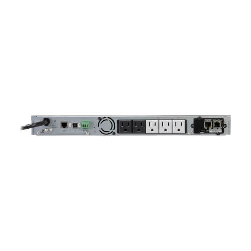 Five managed 5-15R outlets provide connected equipment with pure sine wave AC output and allow you to monitor power consumption down to the outlet group level. Three outlets are grouped into two load banks that let you shed non-critical loads to extend runtime for critical loads.