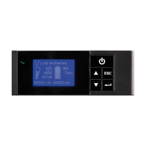 The five-button graphical LCD provides useful information about the UPS itself, load status,