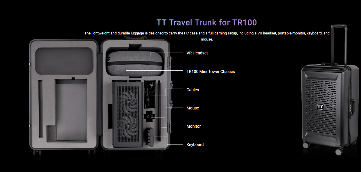 More than just a case, The TR100 Hydrangea Blue is a complete, travel-ready gaming solution. Whether you're traveling for business or pleasure, editing video or designing graphics, playing games or using VR, there's no need to sacrifice performance or leave your gaming experience behind!