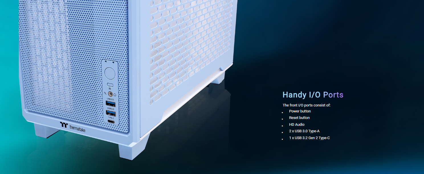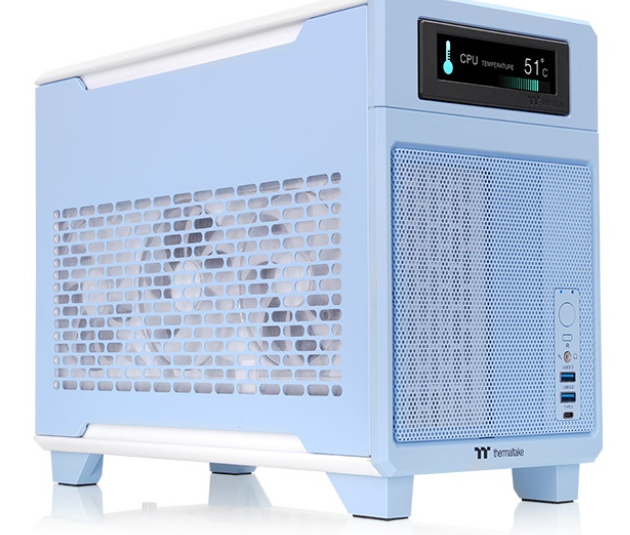 The TR100 Hydrangea Blue Mini Tower Chassis is a compact, dual-chamber, Mini-ITX case that is designed for those who demand performance and portability. It supports an SFX power supply and features space for two 120mm or 140mm fans on the top, as well as room for a 280mm AIO cooler. Additionally, the separately sold suitcase allows users to carry the PC case and a complete gaming setup with them!