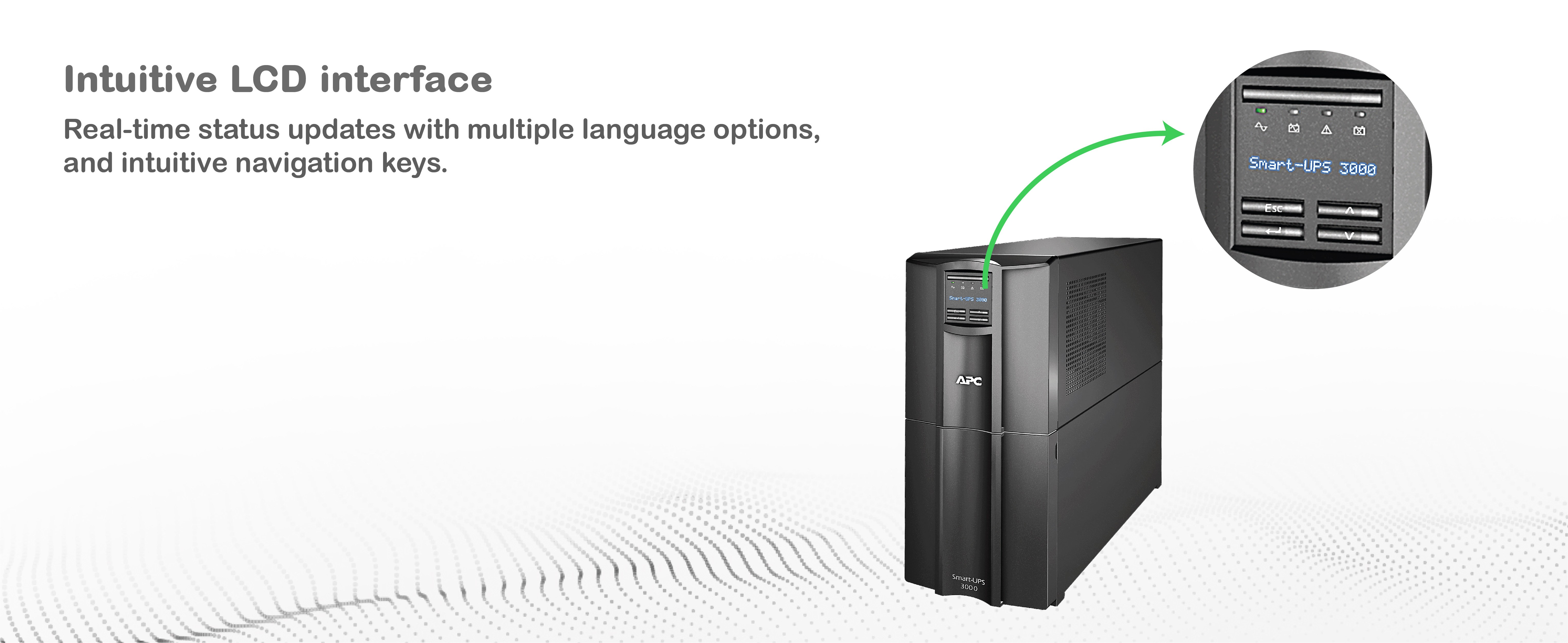 Graphical LCD display Quick, easy-to-read, intuitive LCD provides information about the utility and UPS conditions. |