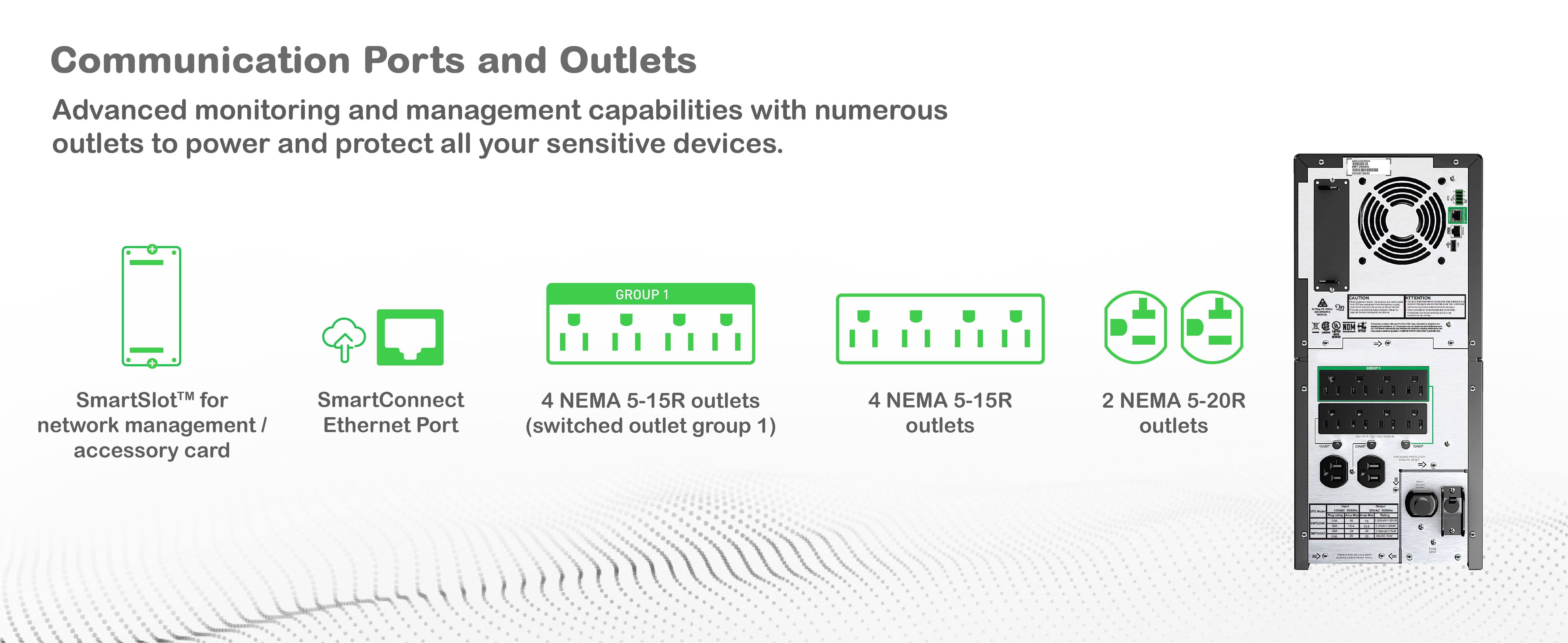 SmartSlot™ for network accessory card Add a network accessory card or purchase an -NC model with a pre-installed AP9641 network card. |