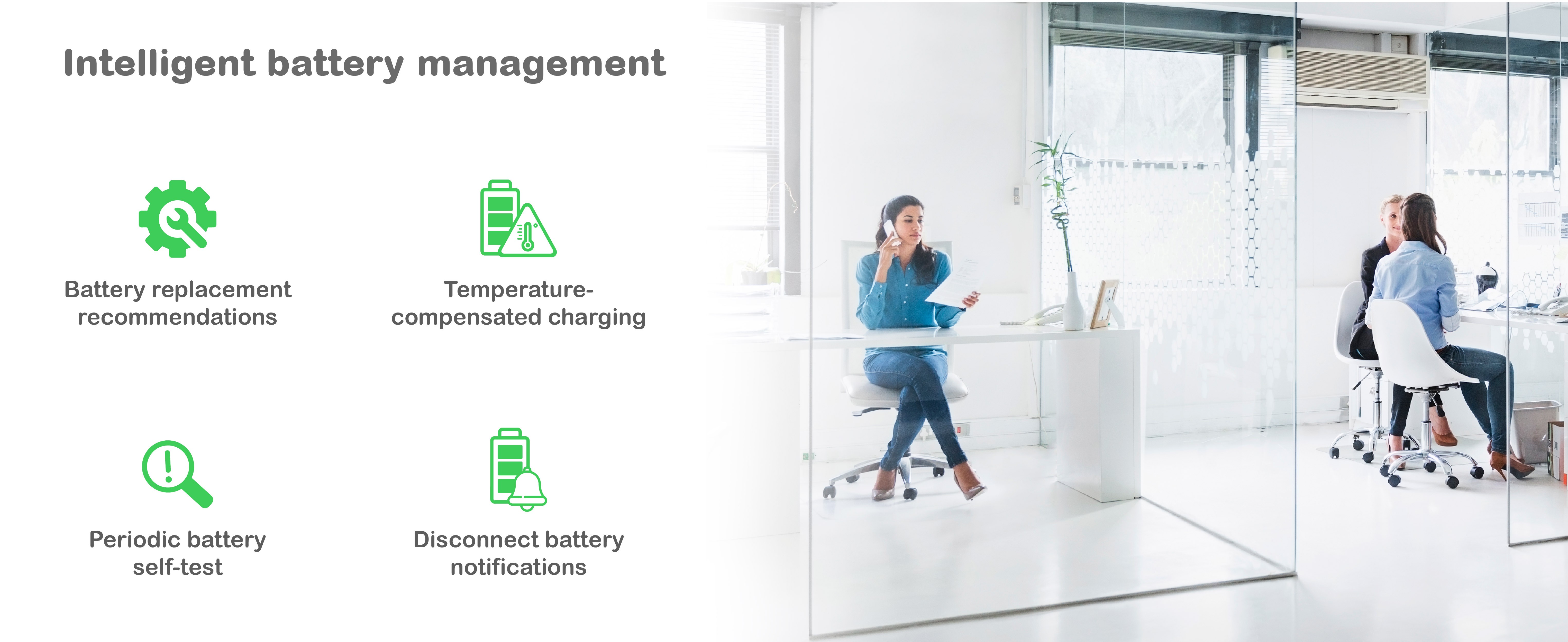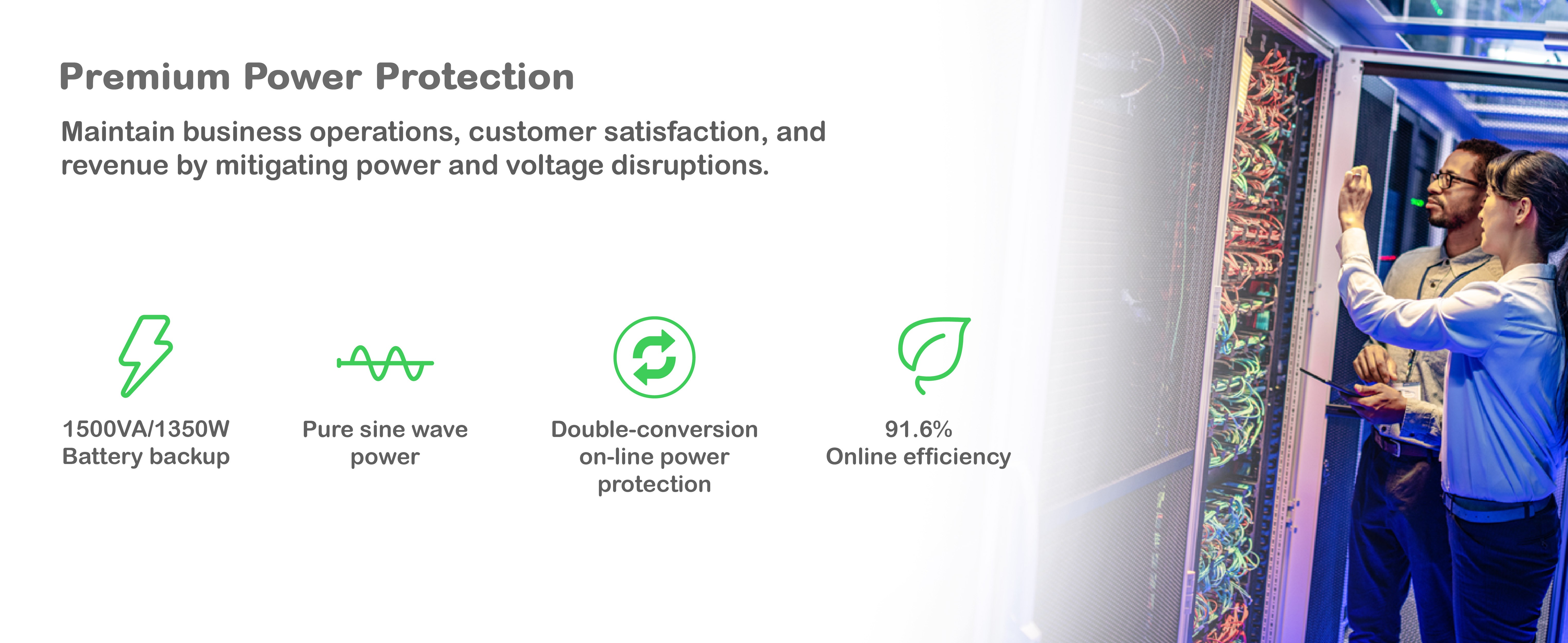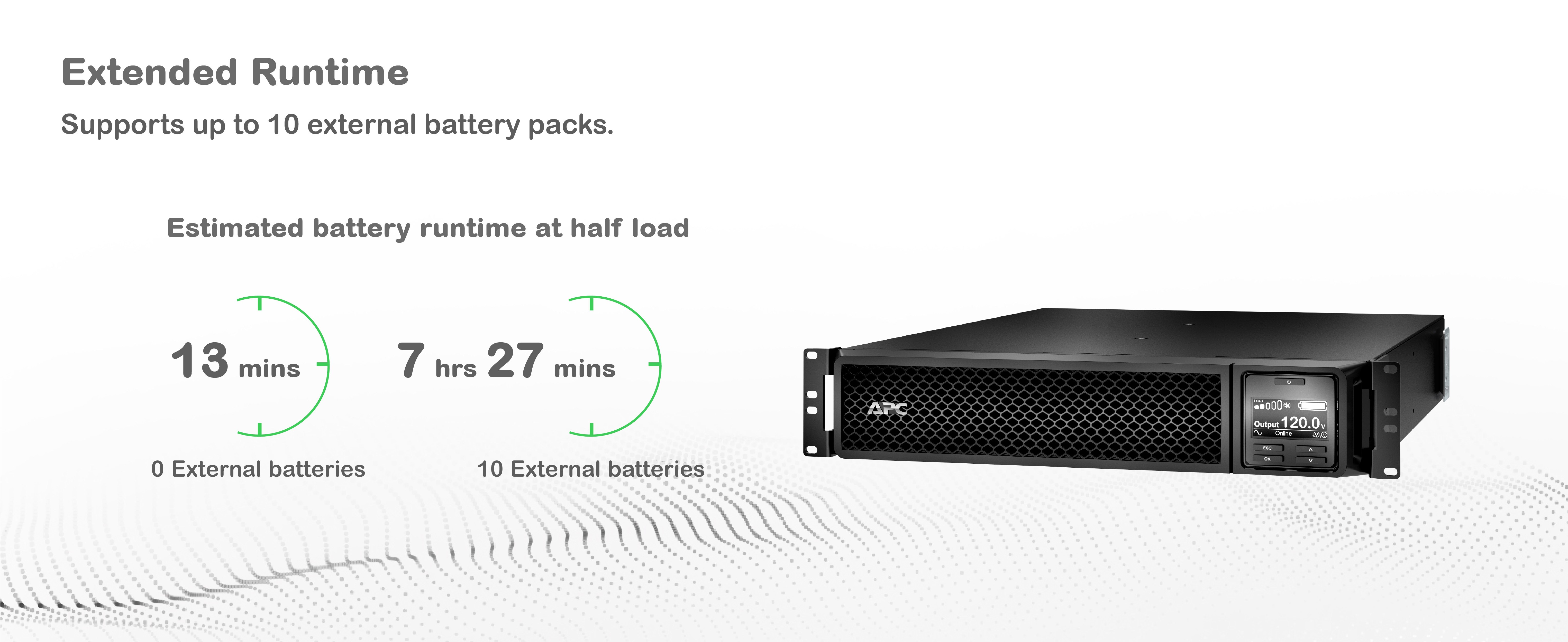 Extended runtime options Connect up to 10 external battery packs for extended runtime needs |