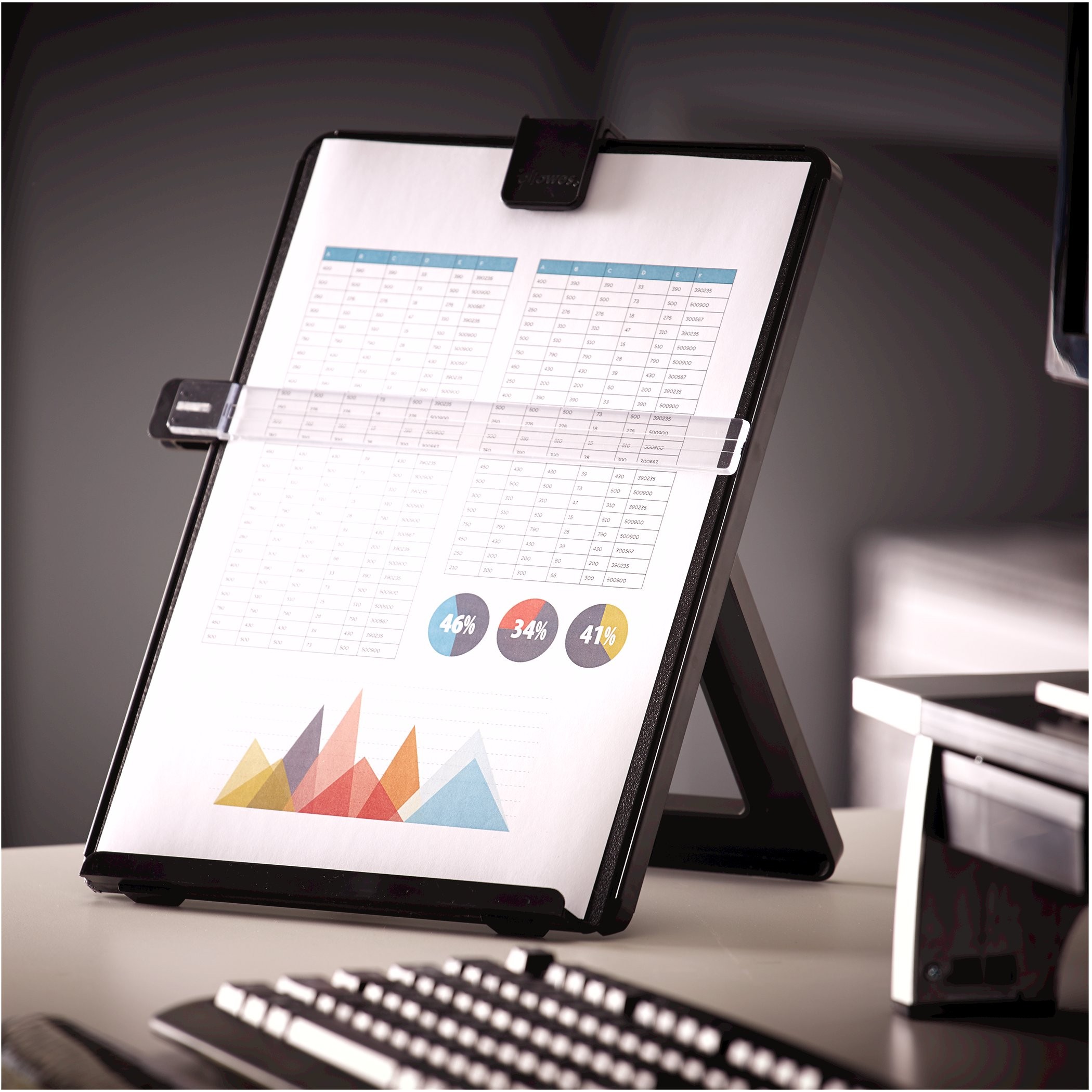 Places documents at eye-level to help prevent neck strain while improving comfort and efficiency.
