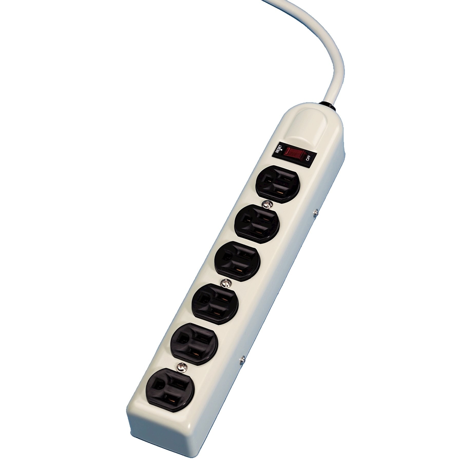 Rugged steel housing with 3-prong grounded plug and outlets; 6’ power cord