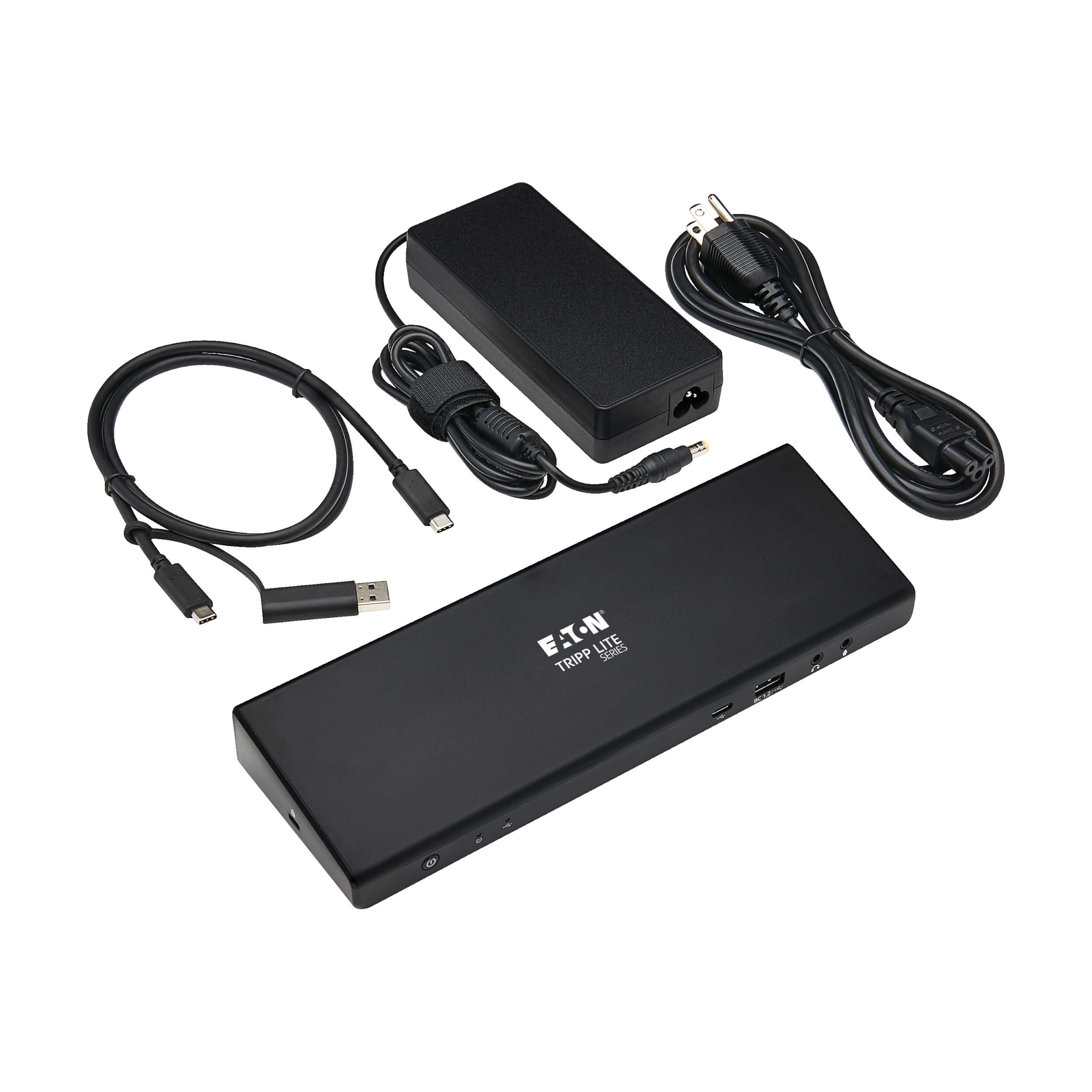 Unlike traditional USB cables that connect in only one direction, the reversible USB-C male connector plugs into a USB-C or Thunderbolt 3/4 port in either direction for an instant connection every time. A USB-C to USB-A adapter is included for connecting the docking station to your host device’s USB-A port.