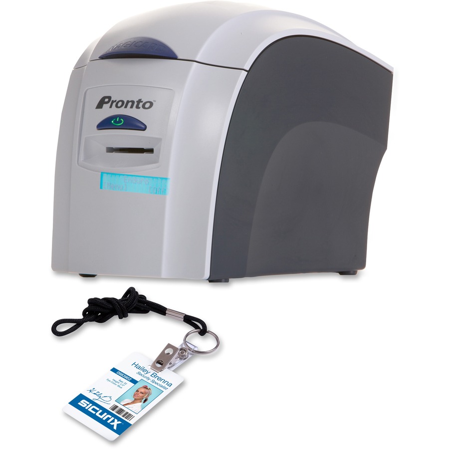 Complete Access Kit is the complete solution to a company starting an identification program. The kit contains everything you need to create your own custom-designed badges from start to finish. Magicard Pronto printer prints single-sided cards with a print speed of 35 seconds for color and 7 seconds for monochrome. Magicard MA300YMCKO color ribbon is capable of producing 300 prints. Kit also includes 100 percent PVC cards (30 mil thick); 120 black ring lanyards; backdrop, 3-in-1 slot punch; 500 strap clips; Asure ID Solo 7 ID card software; and Credential Cam web camera.