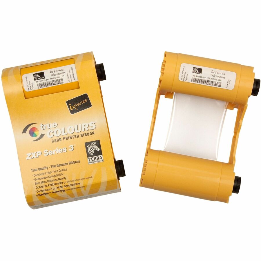 Color ribbon is especially designed for printing a combination of full-color images and one-color text or bar codes in the Zebra ZXP Series 3 ID Card Printer. The YMCKO ribbon yields 200 images.