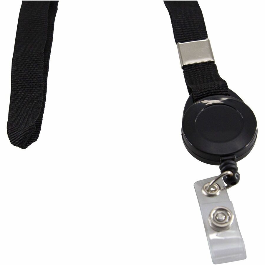 Unique combination of a lanyard and an ID card reel seamlessly join together to make displaying your ID or carrying keys easier. Lanyard is 36" long. Card reel has a 24" cord. Ideal for offices, warehouses, and anywhere else IDs need to be easily accessible as well as visible.