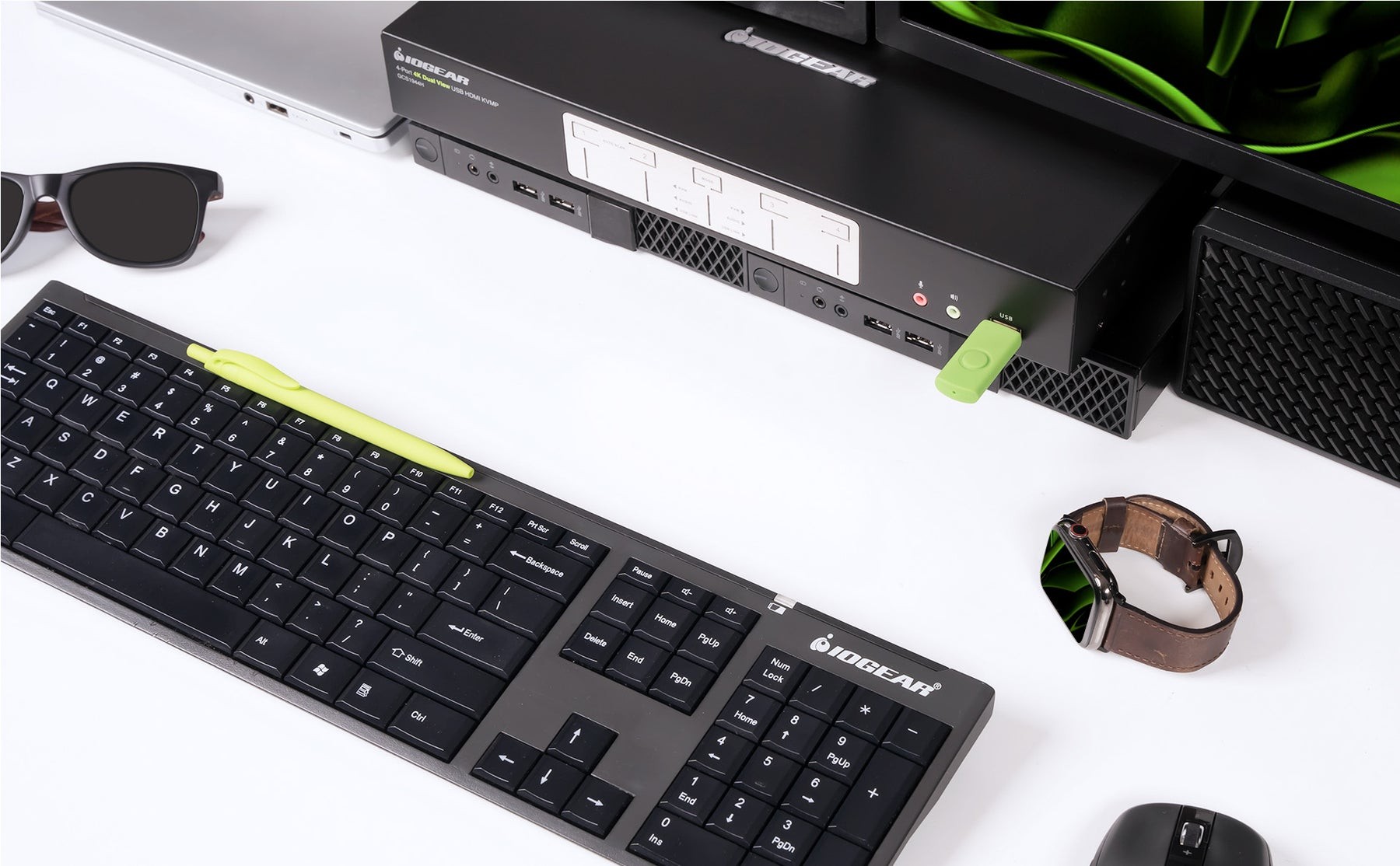 Maximize your high-end dual HD workstations by connecting them to the IOGEAR 4-Port 4K Dual View KVMP with HDMI(R) connection. Experience 4K Cinema resolutions along with rich bass and 7.1 surround sound while switching between both computers and sharing two USB 3.0 peripherals with the push of a button.