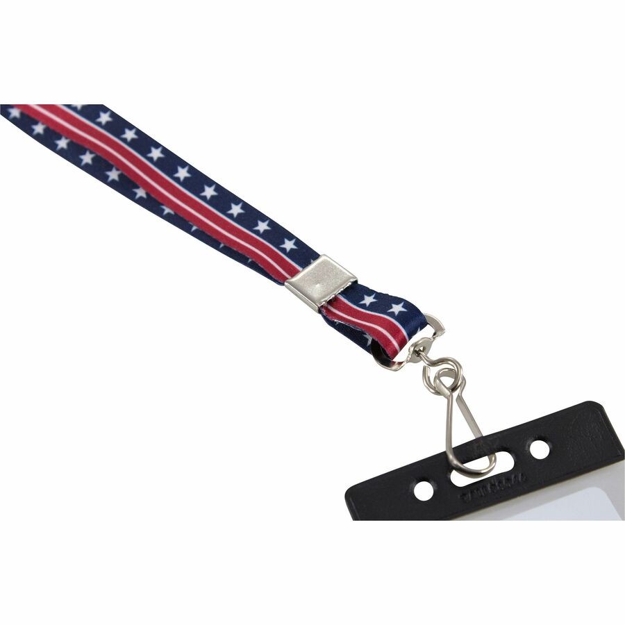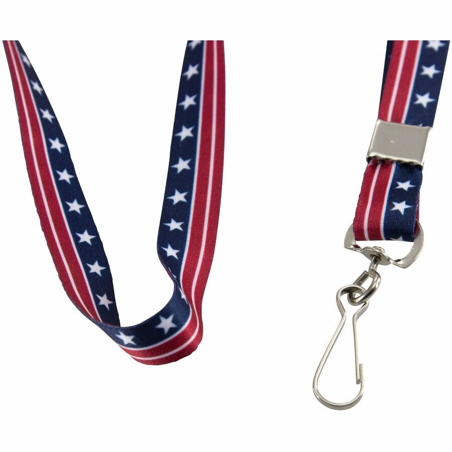 Patriotic Lanyard features a J-hook to attach your keys, ID badge, or cell phone. Patriotic colors are printed in brilliant red, white, and blue.