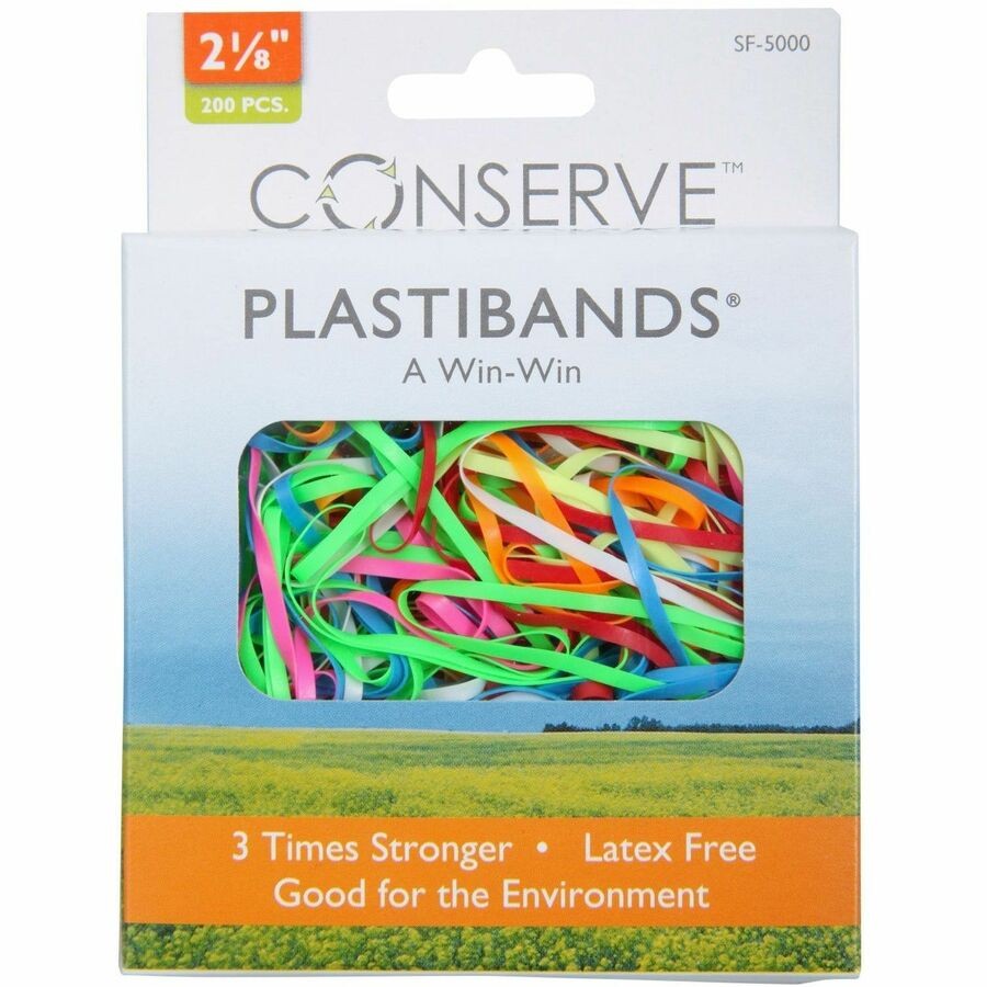 Latex-free polyurethane bands won't discolor or deteriorate. Lab-tested bands are almost three times stronger than an average rubber band of comparable size yet weighs 40 percent less. Assorted vibrant colors are ideal for color-coding. PlastiBands come in handy dispenser package.