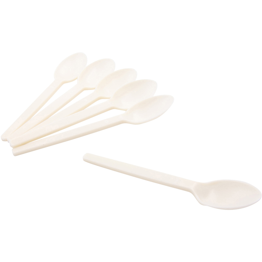 Part of the Conserve Cutlery collection, these spoons are ideal for any event. It is made from corn and other natural starches called PSM. Use with all hot liquids from soups to coffee and tea. This sturdy and durable, disposable cutlery withstands up to 170 degrees. Each spoon is 6" long.