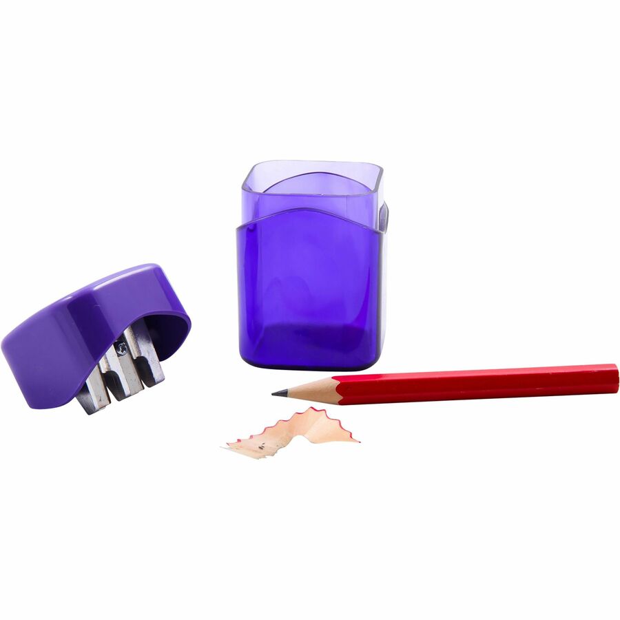 Pencil sharpener features a compact size and a receptacle to catch and hold shavings. Made for standard pencils only. Blade is honed precision-steel. Pencil sharpener meets or exceeds standard for RoHS compliance for lead, mercury, bromine, chrome and cadmium.