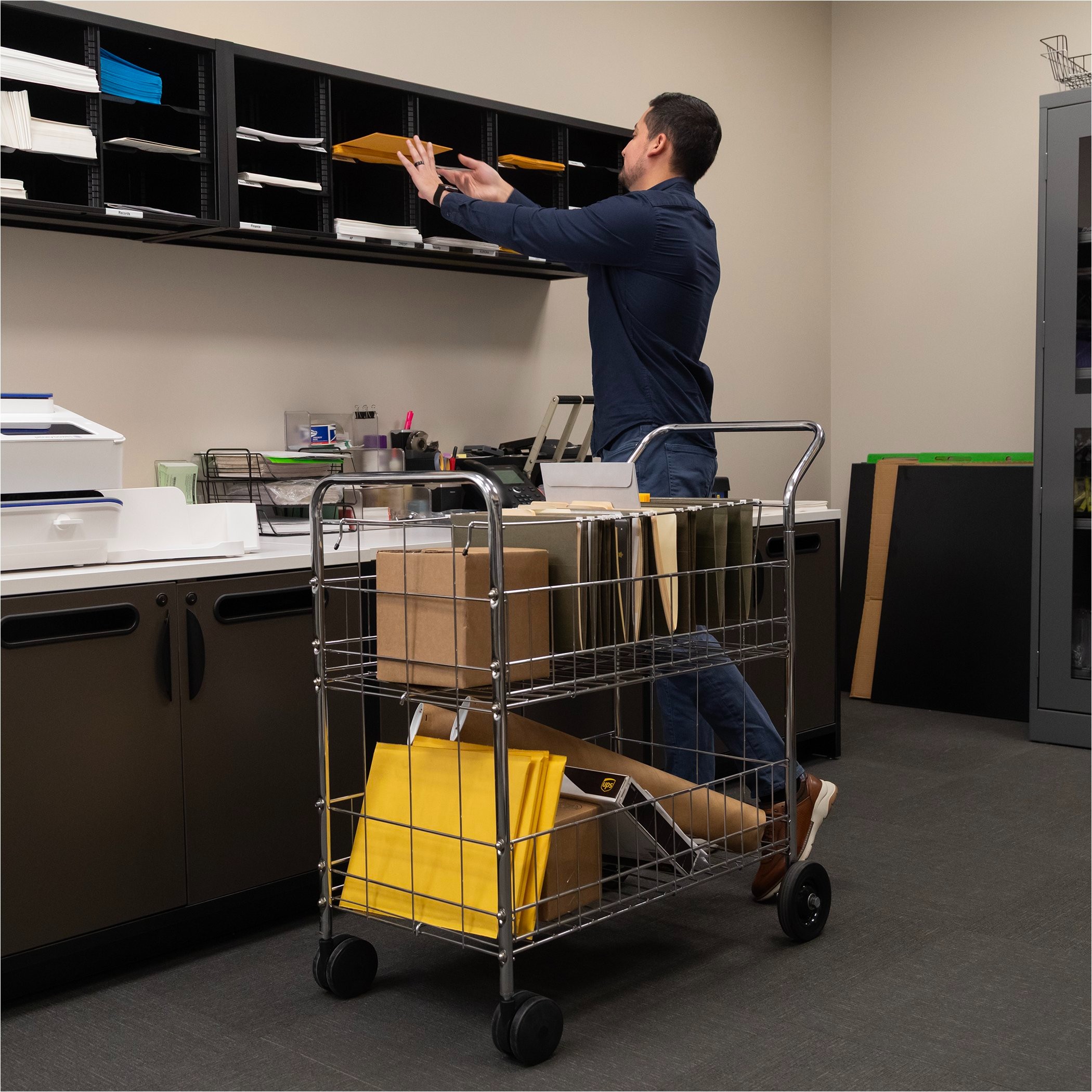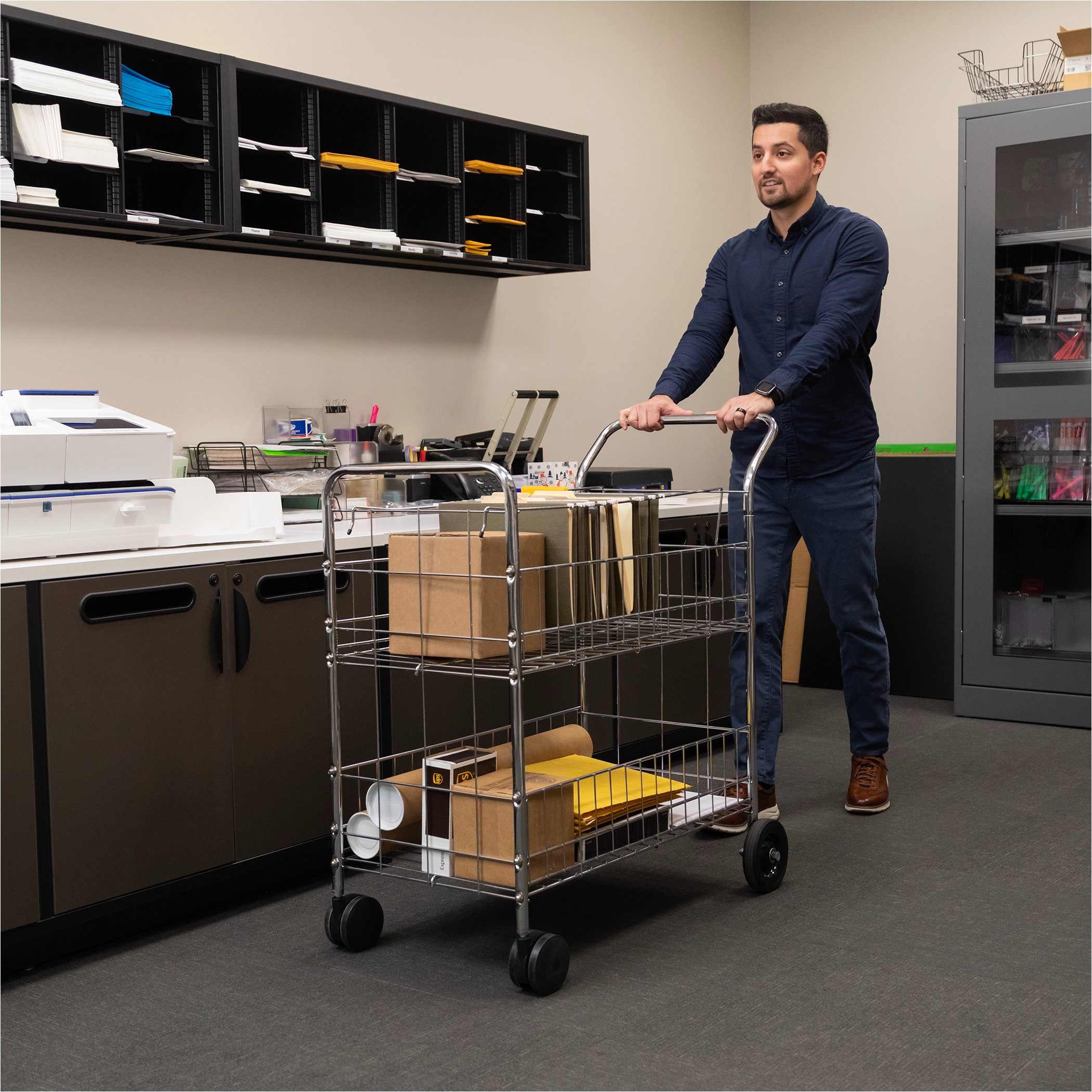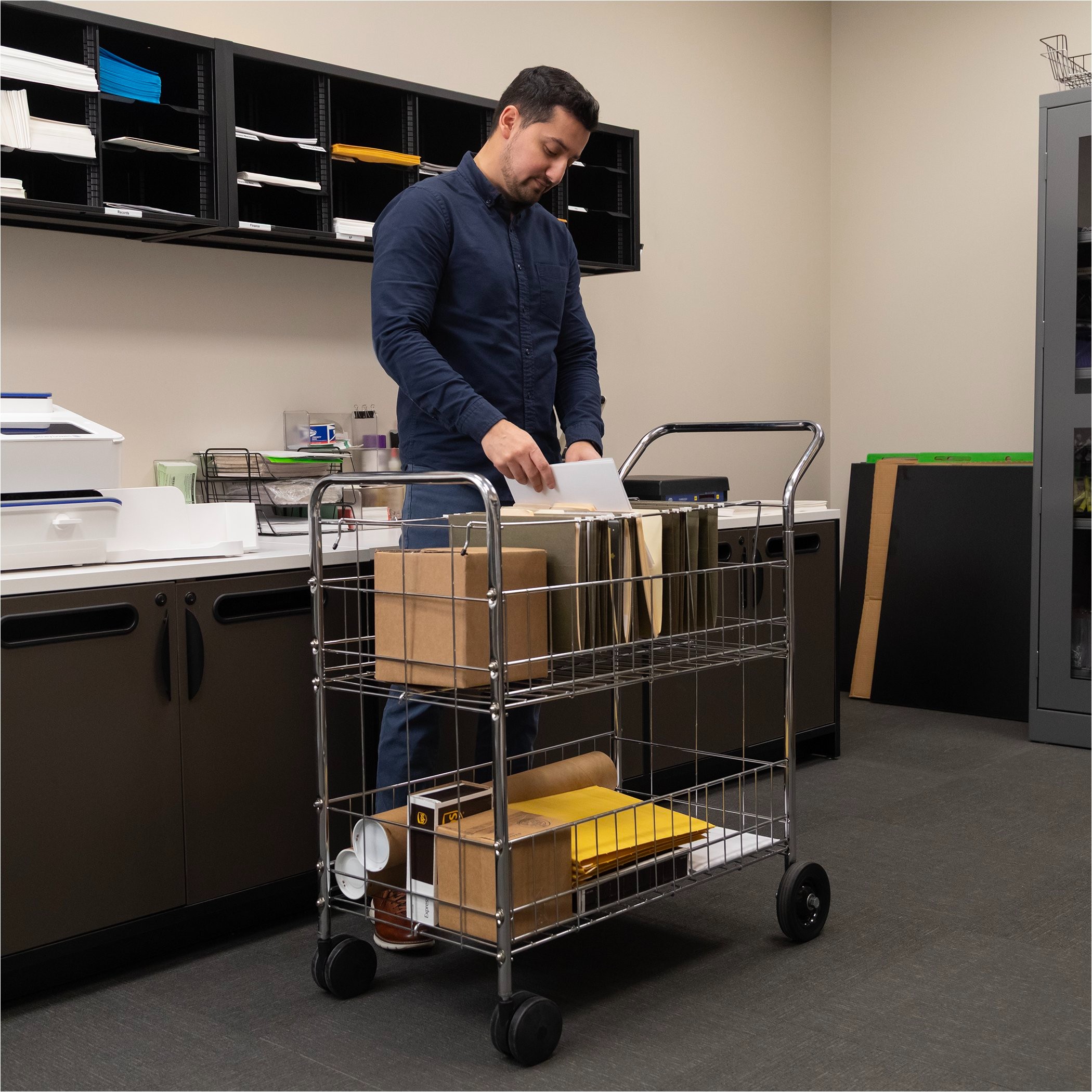 Features adjustable divider system to accommodate both letter and legal size hanging folders at the same time. Multi-purpose bottom shelf provides additional storage. Roll under desk when not in use. Easy, tool-free assembly. Four twin wheel casters (2 locking).