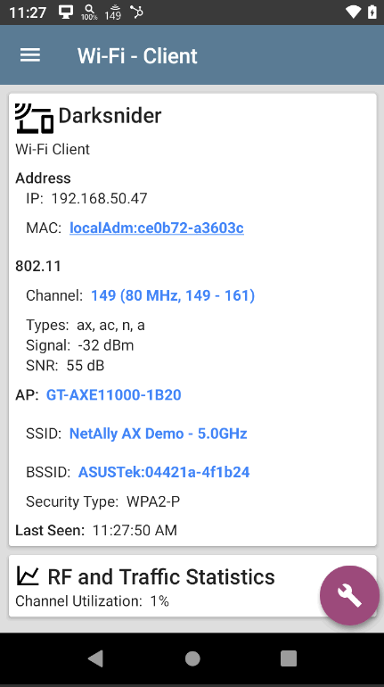 • Validate actual Wi-Fi 6/6E network performance and utilization using a native 802.11ax radio • Gain visibility into all Wi-Fi devices working on the 2.4GHz, 5GHz, and 6GHz bands*