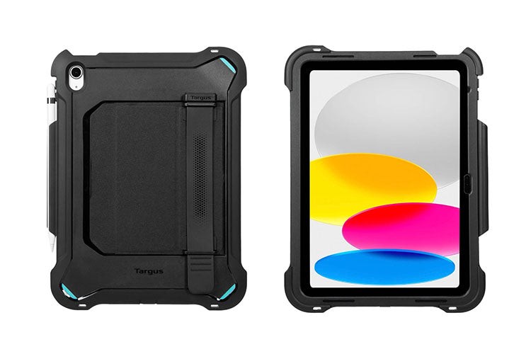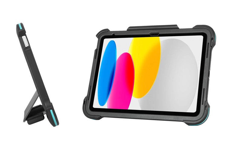 Whether you’re traveling, in the office, or at a remote job site, the Targus® SafePort® Rugged Max Case for iPad® A16 and (10 th gen.) 10.9-inch provides ultimate coverage and maximum protection for your iPad. Featuring BlueShock™ Protection, an advanced, lightweight triple-layer corner protection system, this case is thoroughly tested to meet the rigorous mil-spec (MIL-STD-810G) standards that protect from harsh environmental conditions, sudden drops, and accidental slips.* It’s designed with an integrated, bezel-free screen protector, and silicone port covers to protect the audio and power ports when necessary. You can rest assured this rugged case provides the best, all-around protection from everyday use, water, drops, dust, or force.