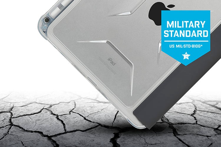 Minor drops and bumps are no problem for this durable case. In fact, the Click-In™ passes rigorous MIL-STD 810G testing* to ensure it can protect your iPad® from drops up to 4 feet (or 1.2 meters).