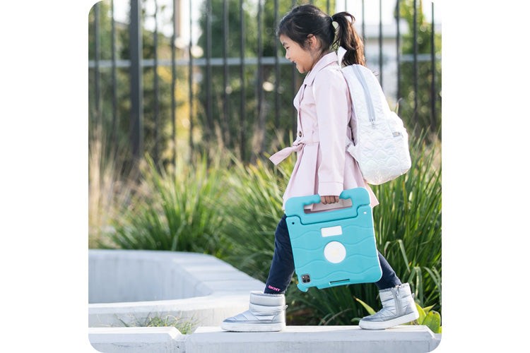 A convenient carry handle doubles as a stand, so children can grab and go or set it and stand it for their viewing preference. Precision cutouts give full access to controls, ports, and cameras, so it’s easy to enjoy their favorite tunes, check out an app, or join in on their latest virtual class without missing a beat.
