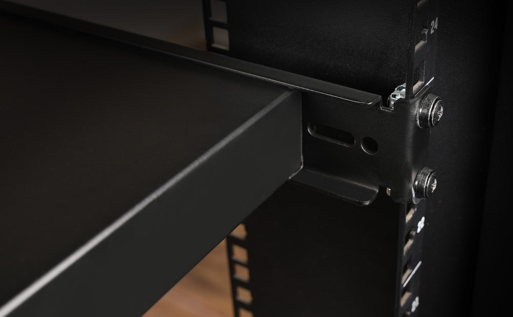Crafted from heavy-duty steel, this shelf boasts a smooth, durable surface and robust construction engineered for demanding environments. Capable of supporting up to 330 lbs (150 kg), its formidable build ensures reliable support for a wide array of non-rackmount equipment, from multiple servers to large UPS units, without sagging or warping.
