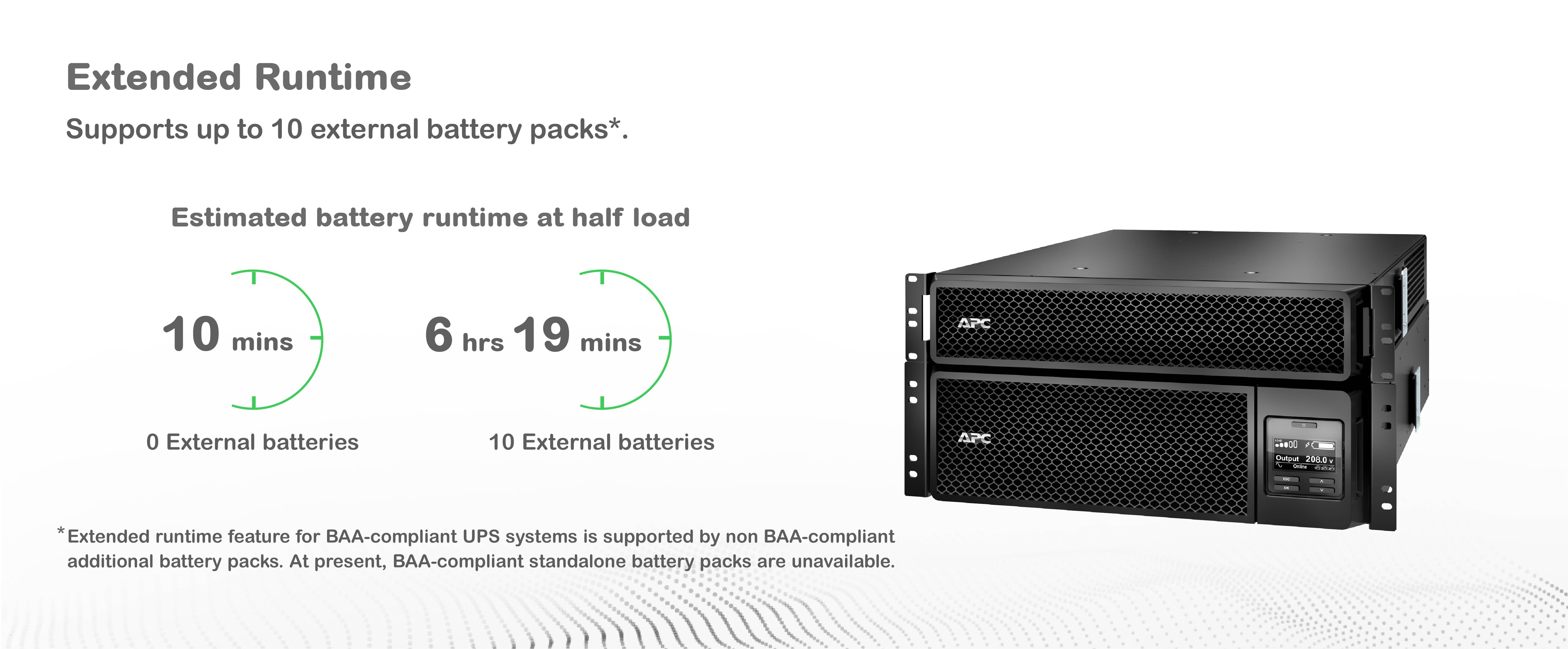 Extended runtime options Connect up to 10 external battery packs for extended runtime needs |