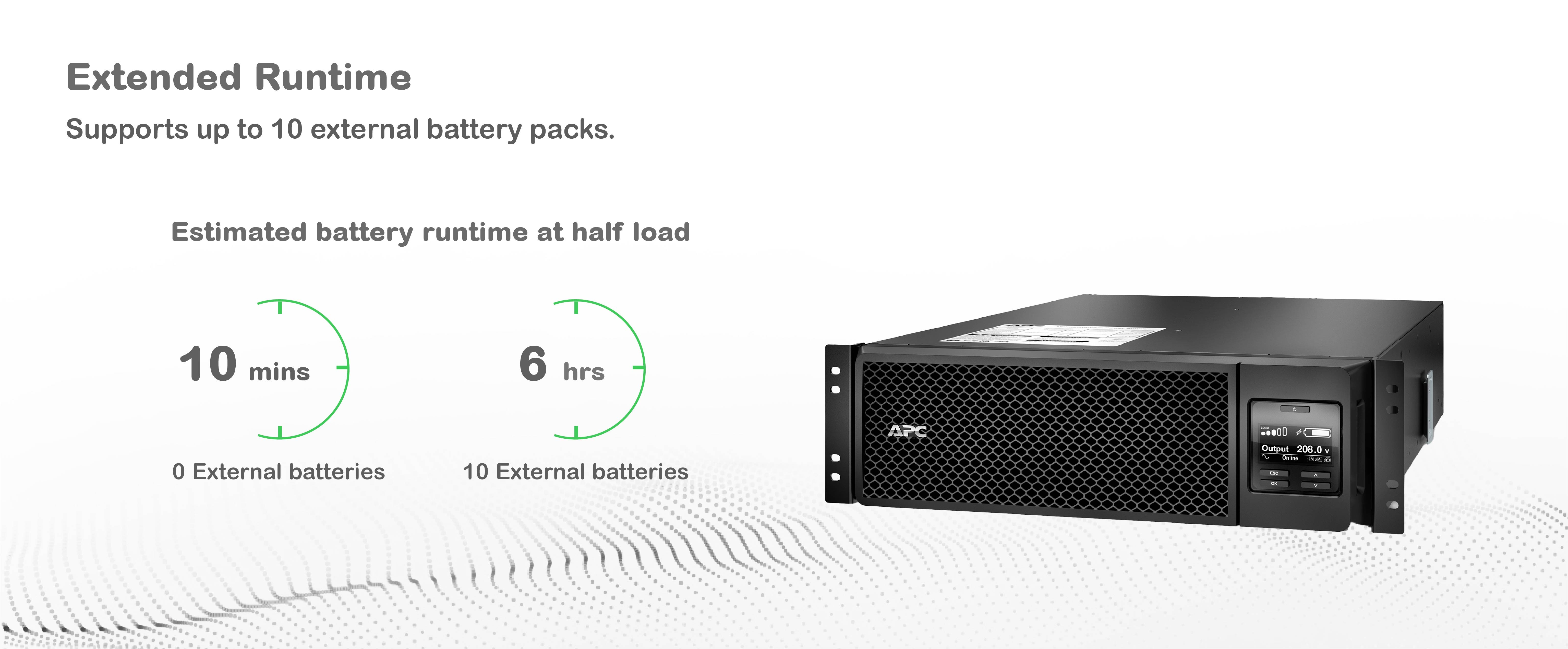 Extended runtime options Connect up to 10 external battery packs for extended runtime needs |