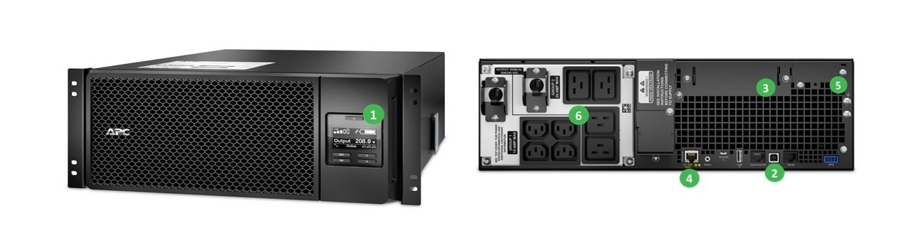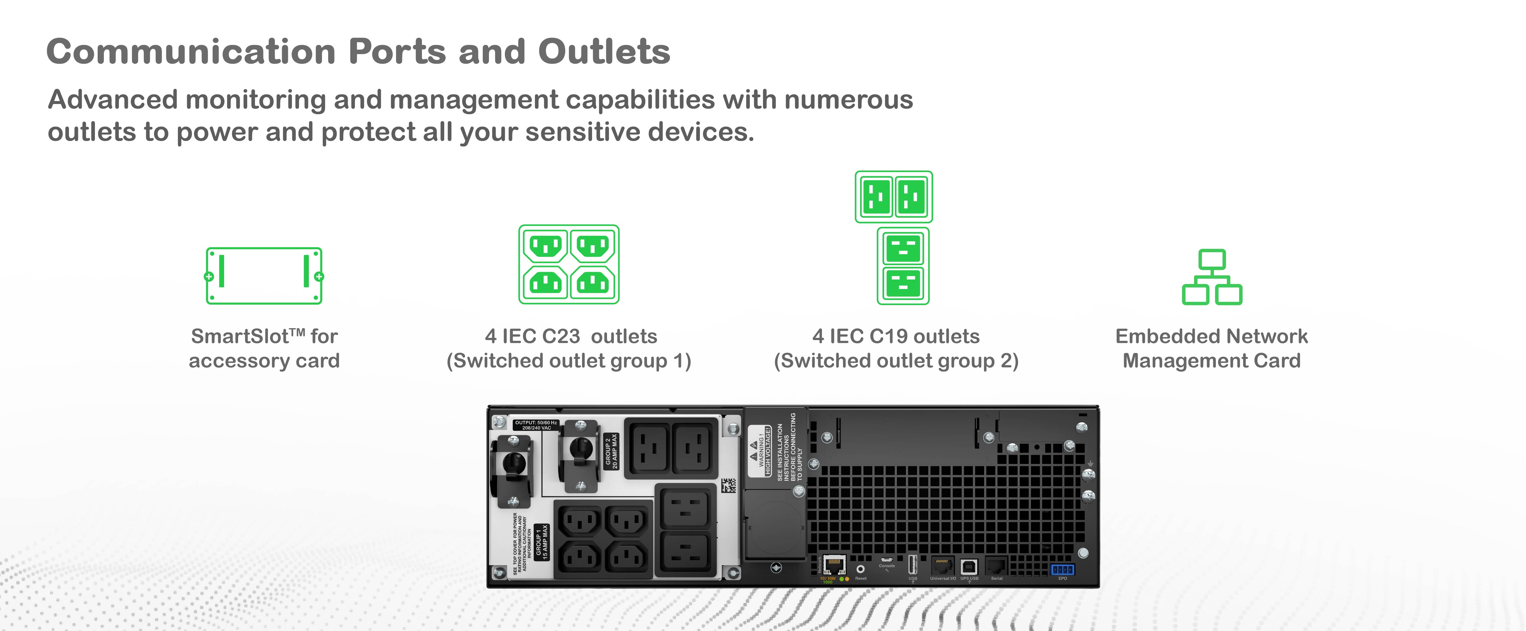 Options for monitoring and managing your UPS include EcoStruxure IT, Network Management Card, and PowerChute™ Software.